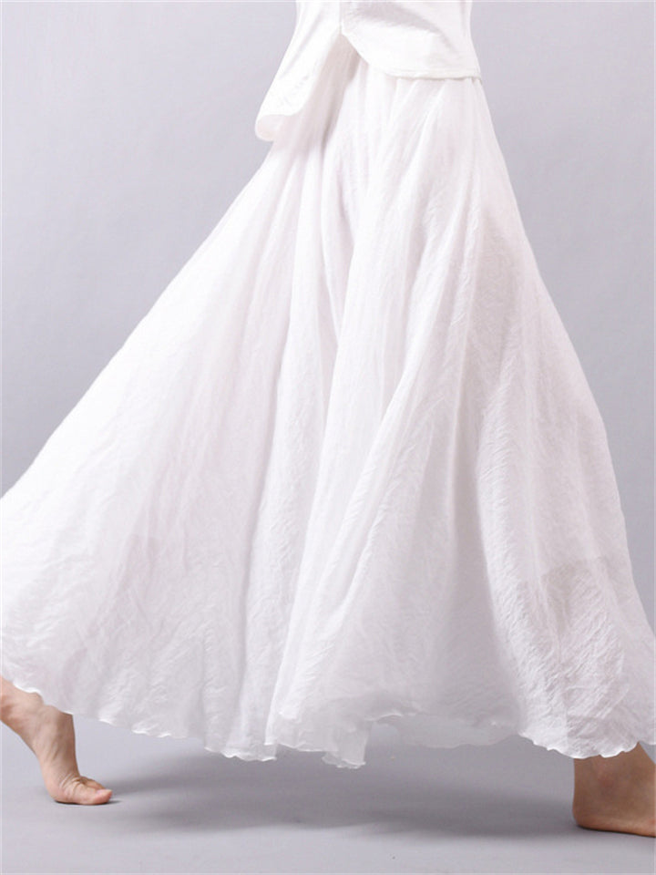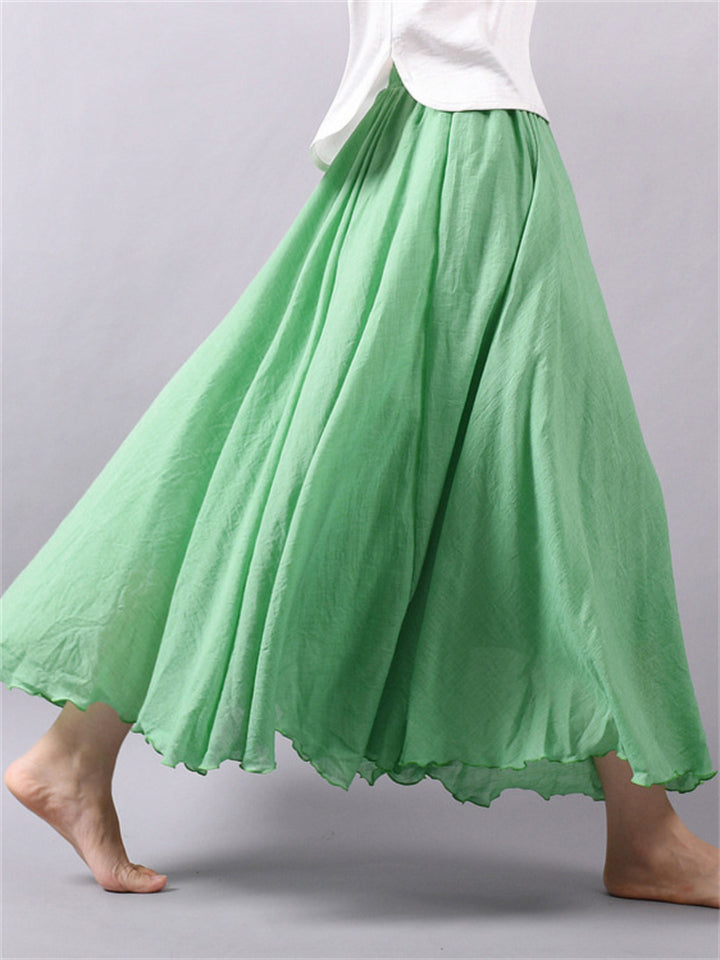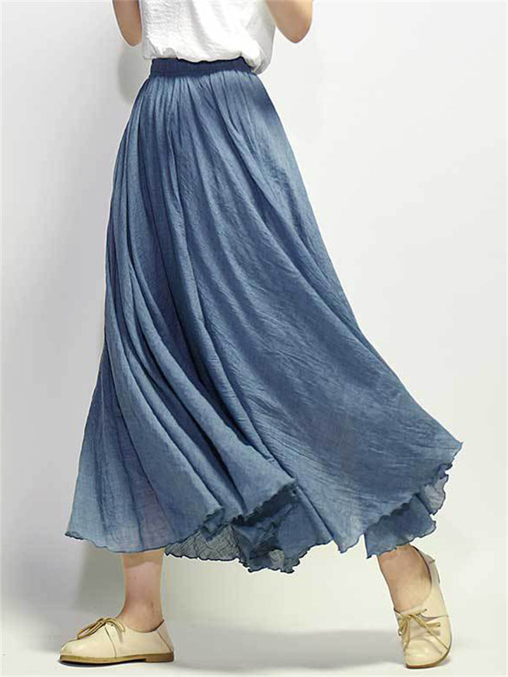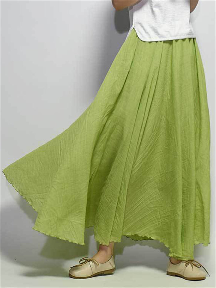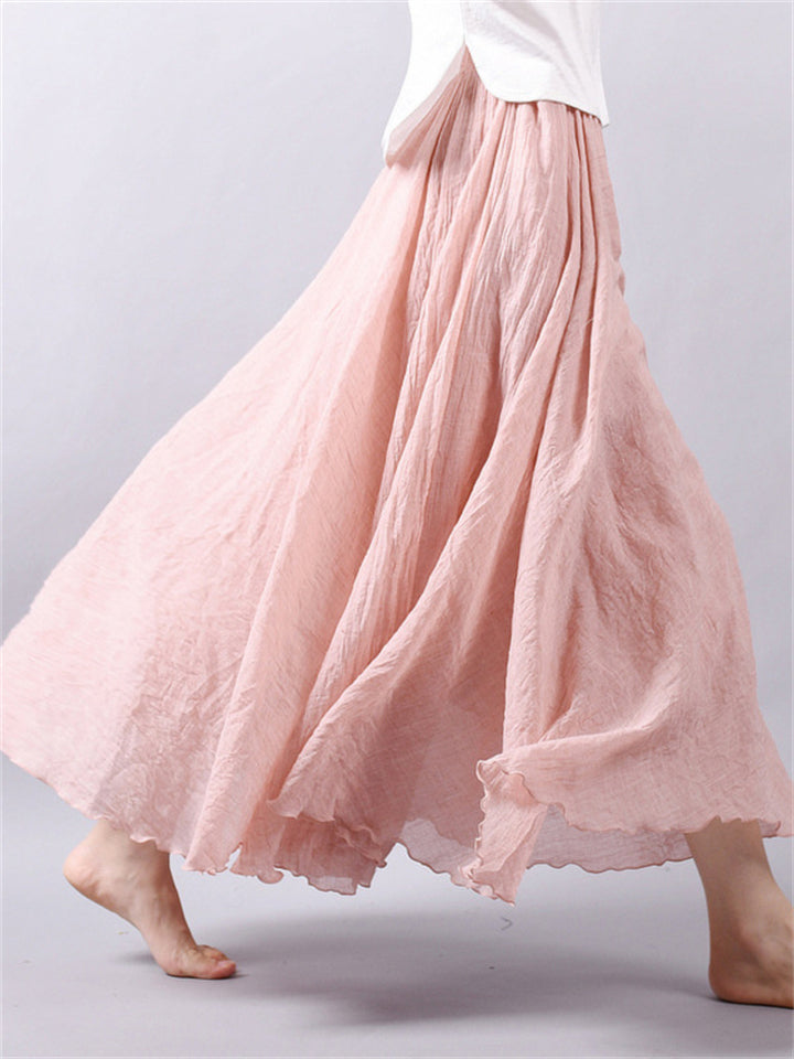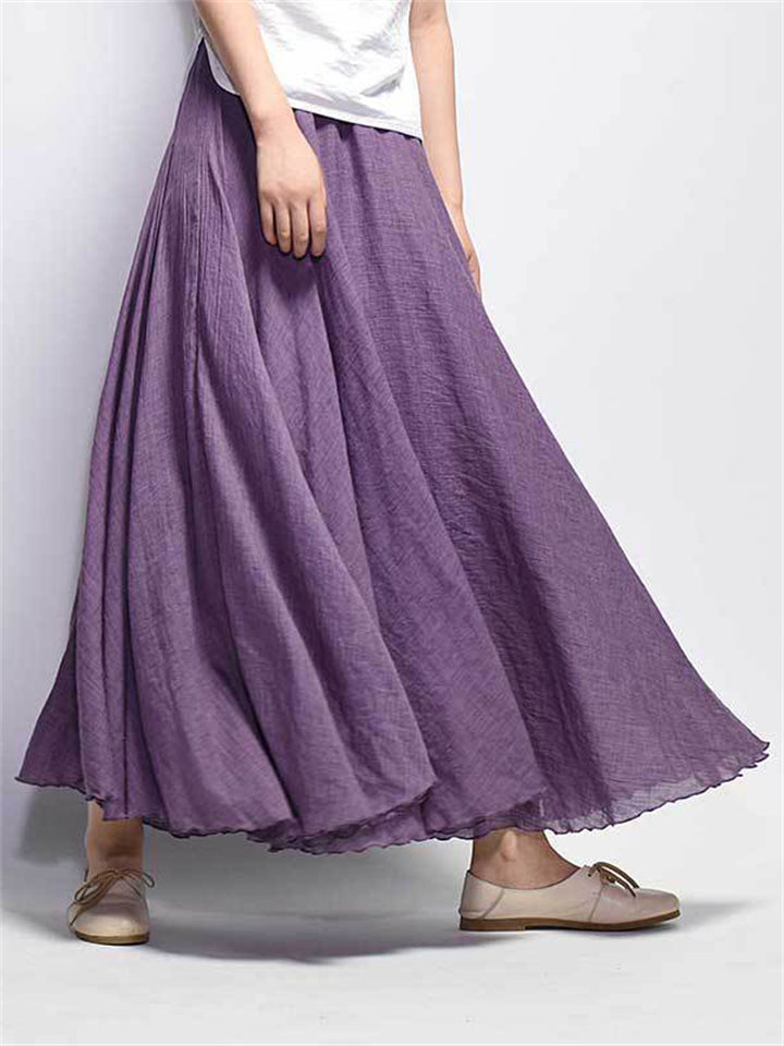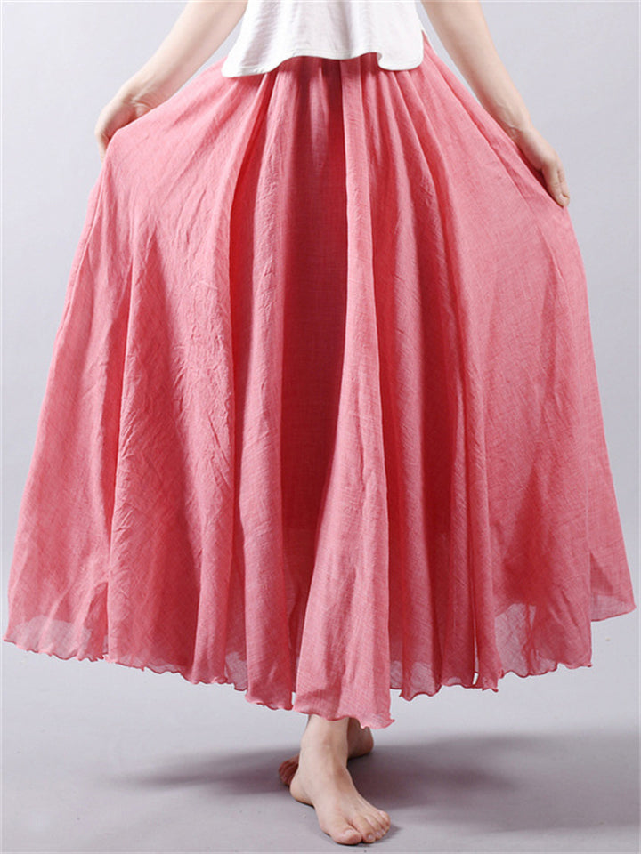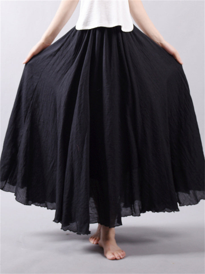 Women's Elastic Waist Pleated Maxi Linen Skirts