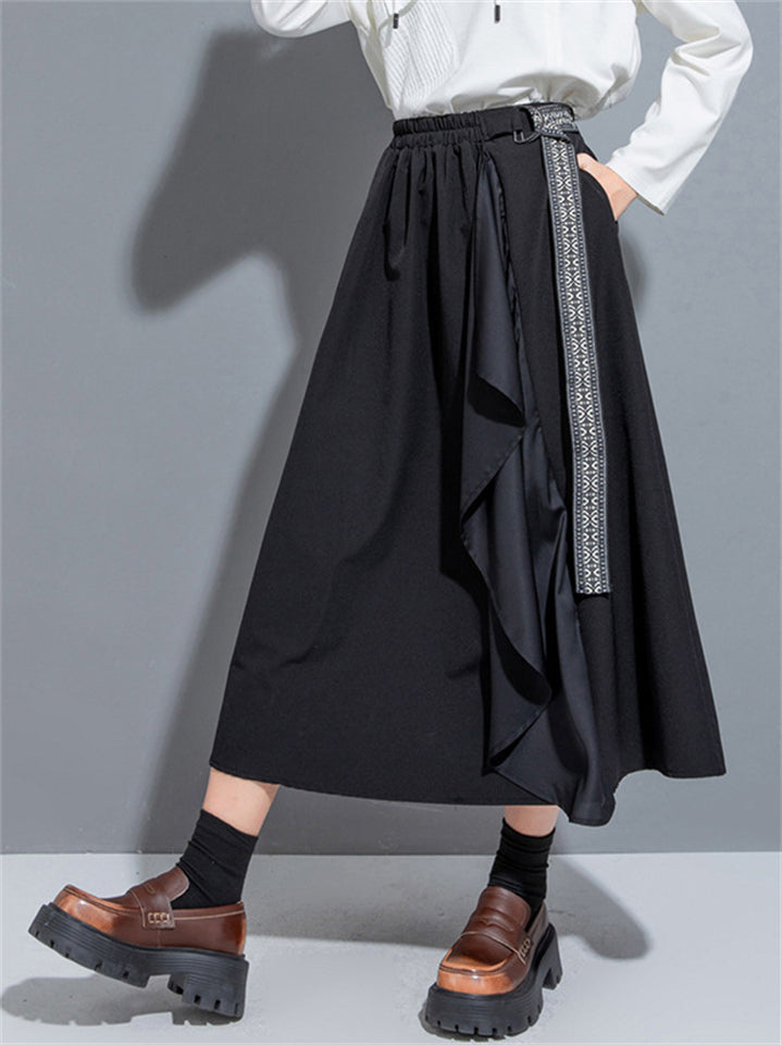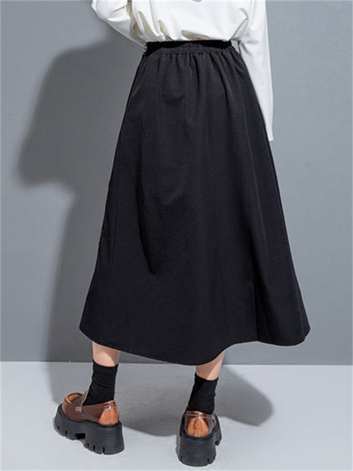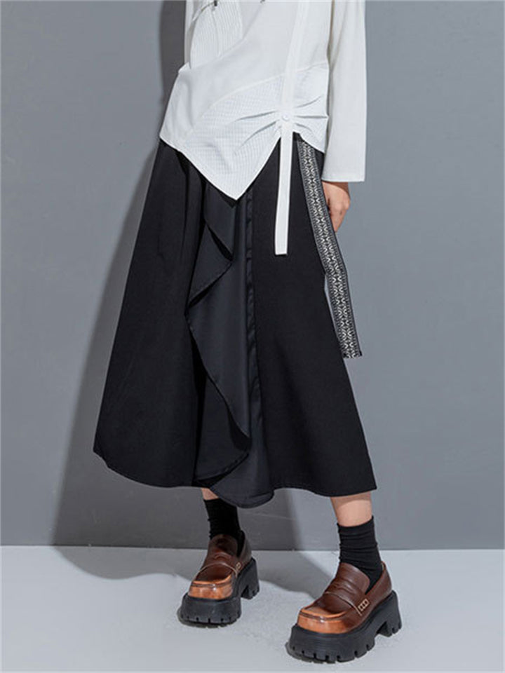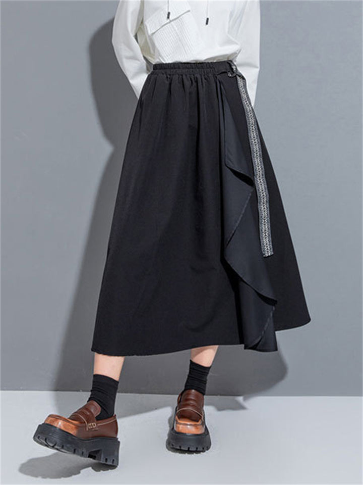 Women's Loose Solid Color Patchwork Asymmetric Skirt