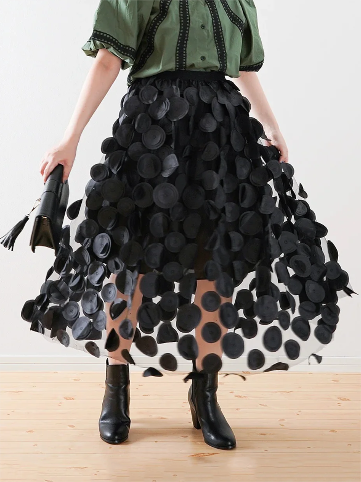Women's Fashion Ultra Light Polka Dot Mesh Skirt