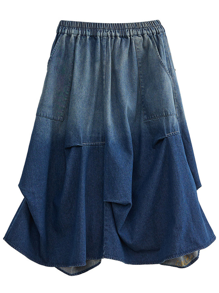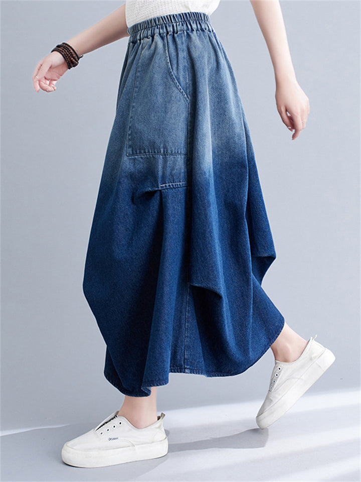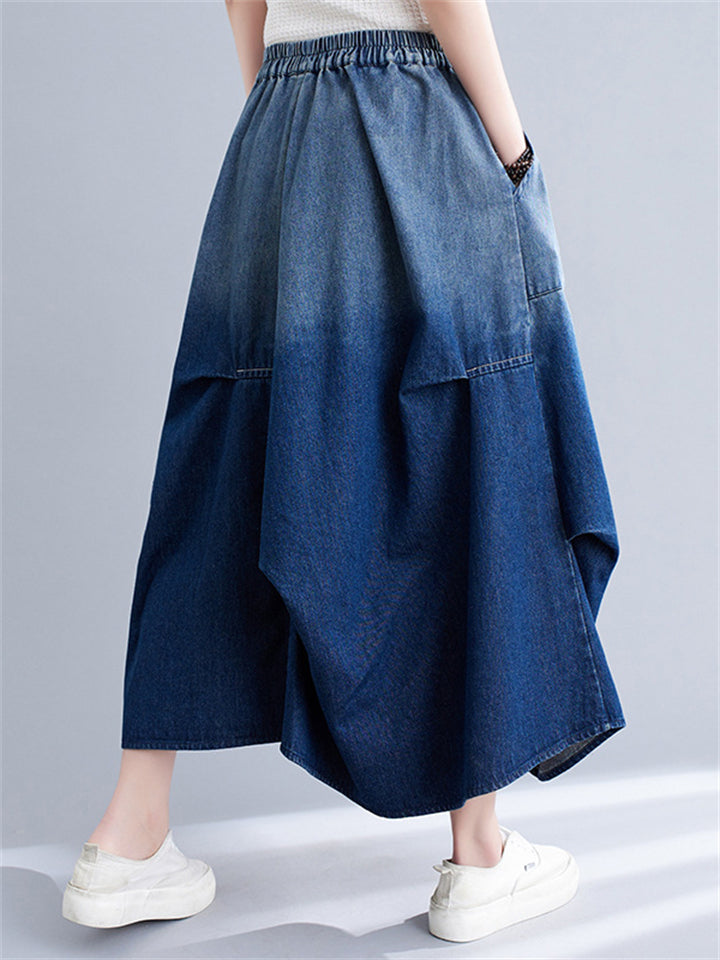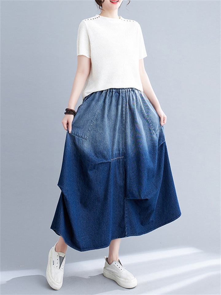 Women's Gradient Color Elastic Waist A-line Denim Skirts
