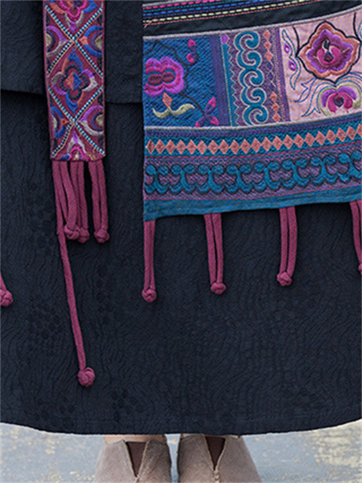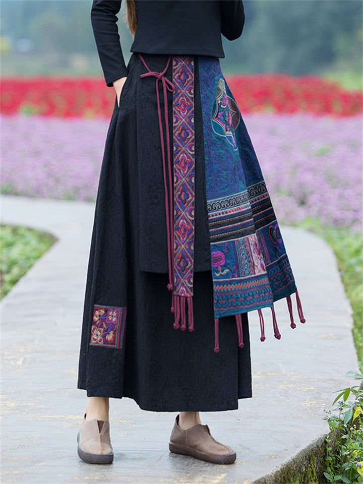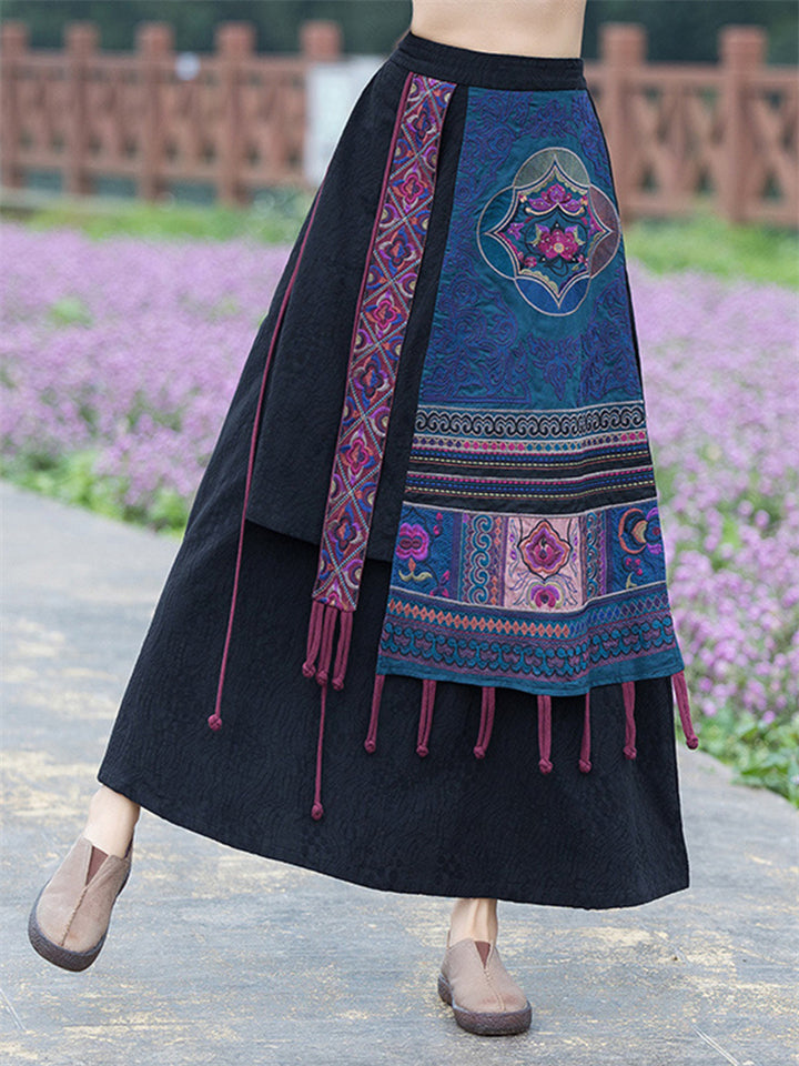 Women's Jacquard Applique Elasticated Waist Embroidered Ethnic Skirt