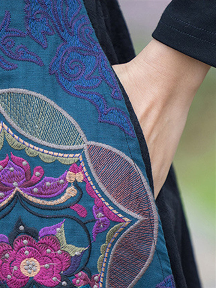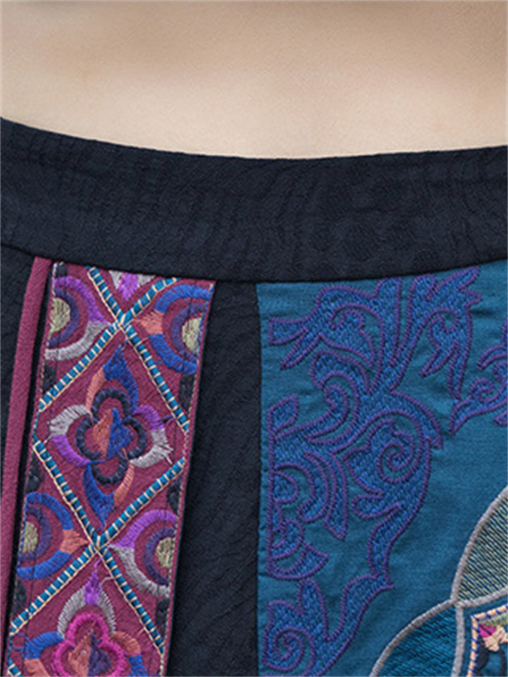 Retro Embroidery Mesh Elastic Waist Skirts for Women