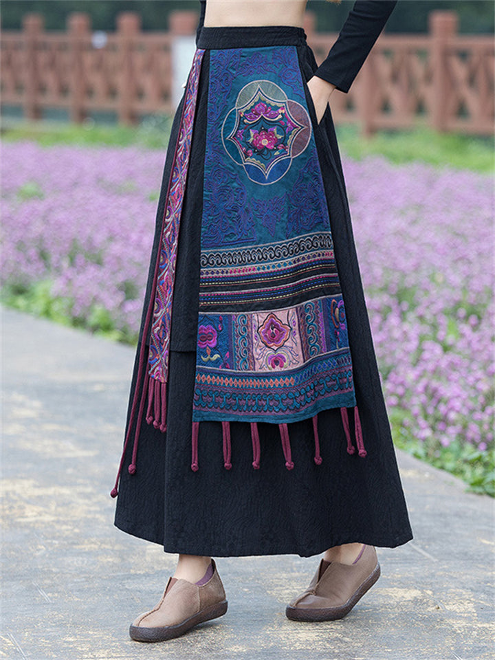 Women's Ethnic Style Contrast Color High Rise Skirts