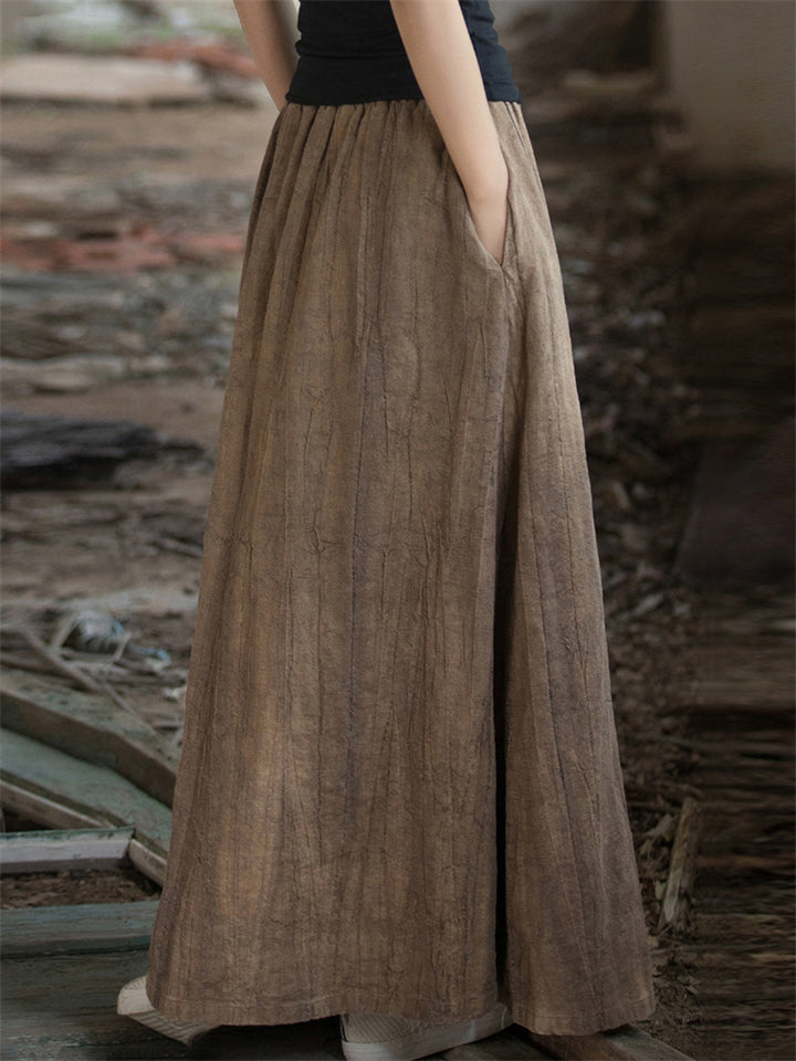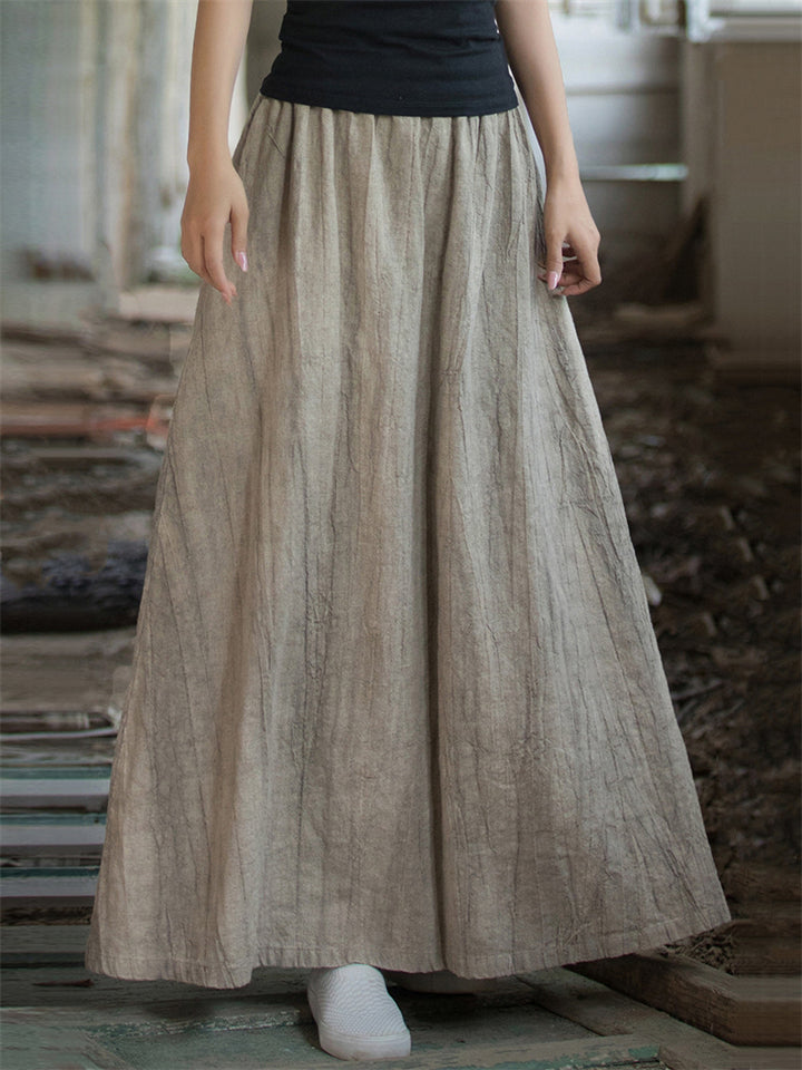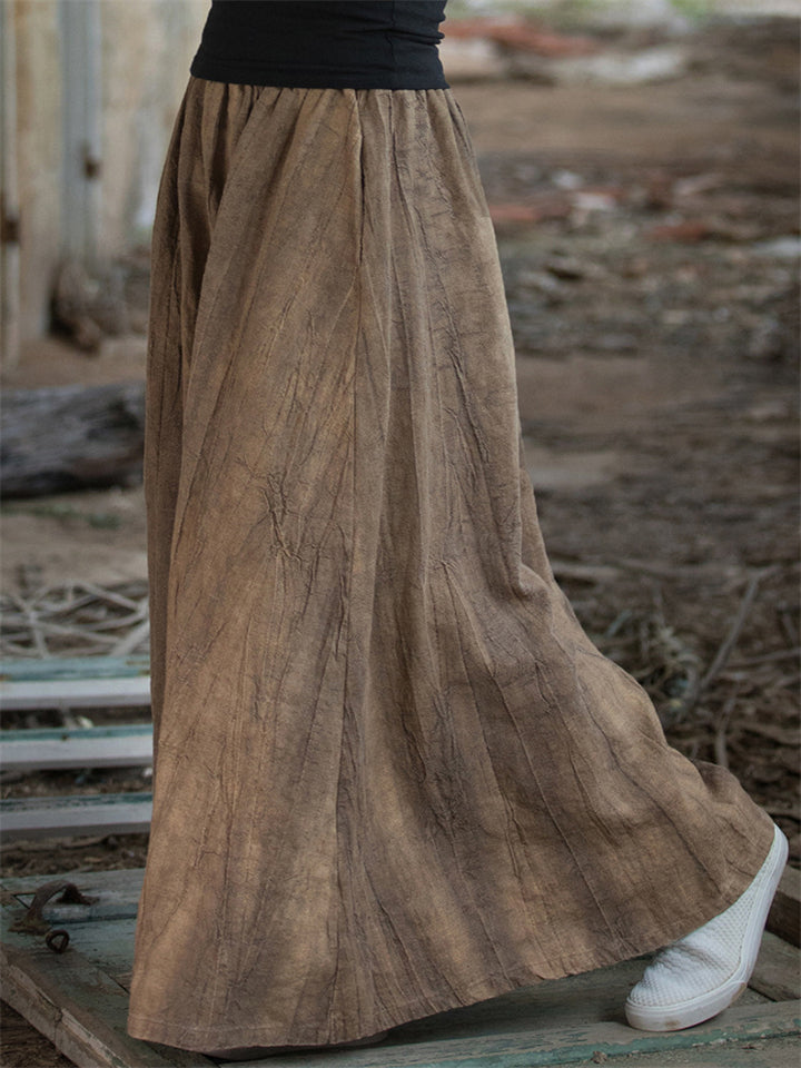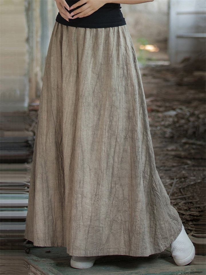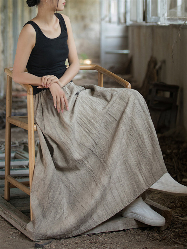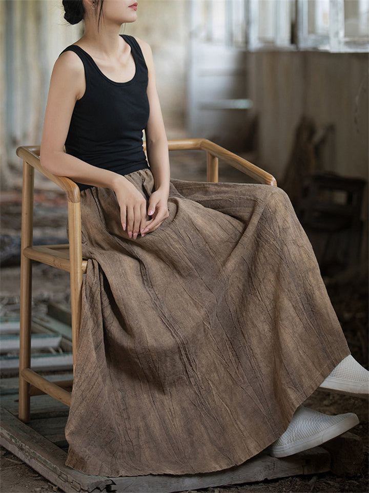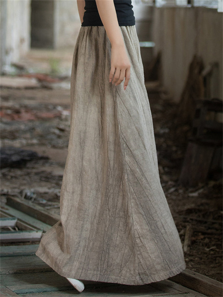 Women's Linen Cotton Elastic Waist Tie Dye Skirt