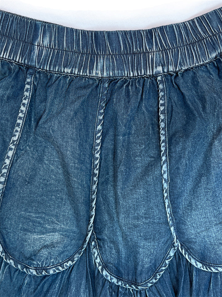 Summer Women's Elastic Waist Gradient Denim Skirts