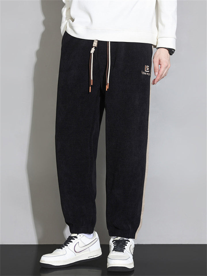 Men's Corduroy Loose Fit Casual Jogger Sweatpants with Side Stripes