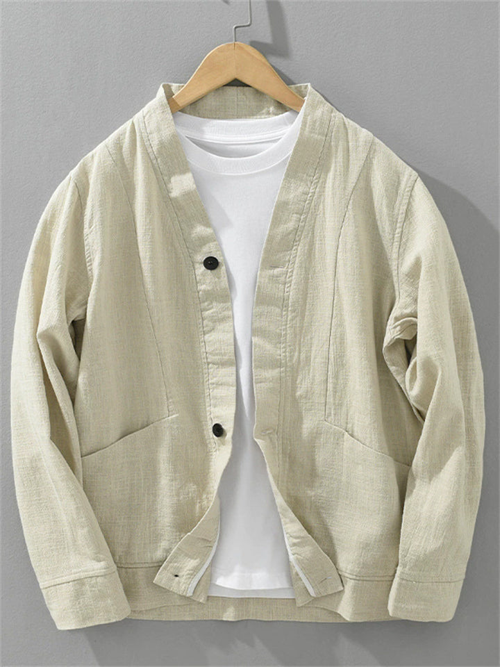 Men's Loose Fit Ramine V-Neck Button Up Casual Jackets Spring Autumn