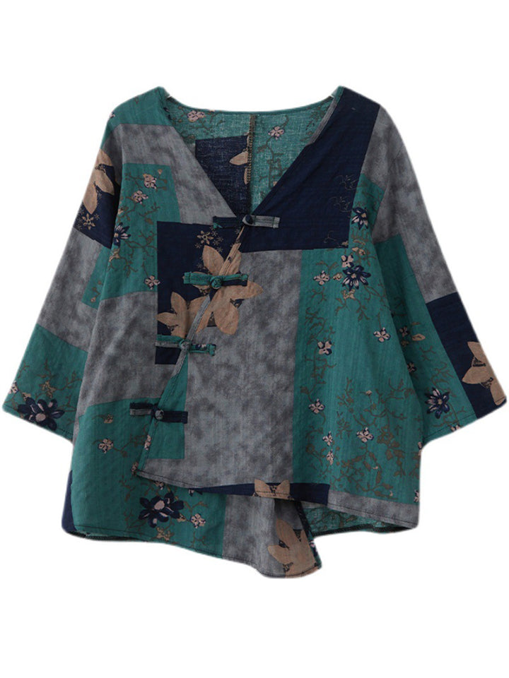 Diagonal Button Women's Spring Summer Improved Hanfu Shirt