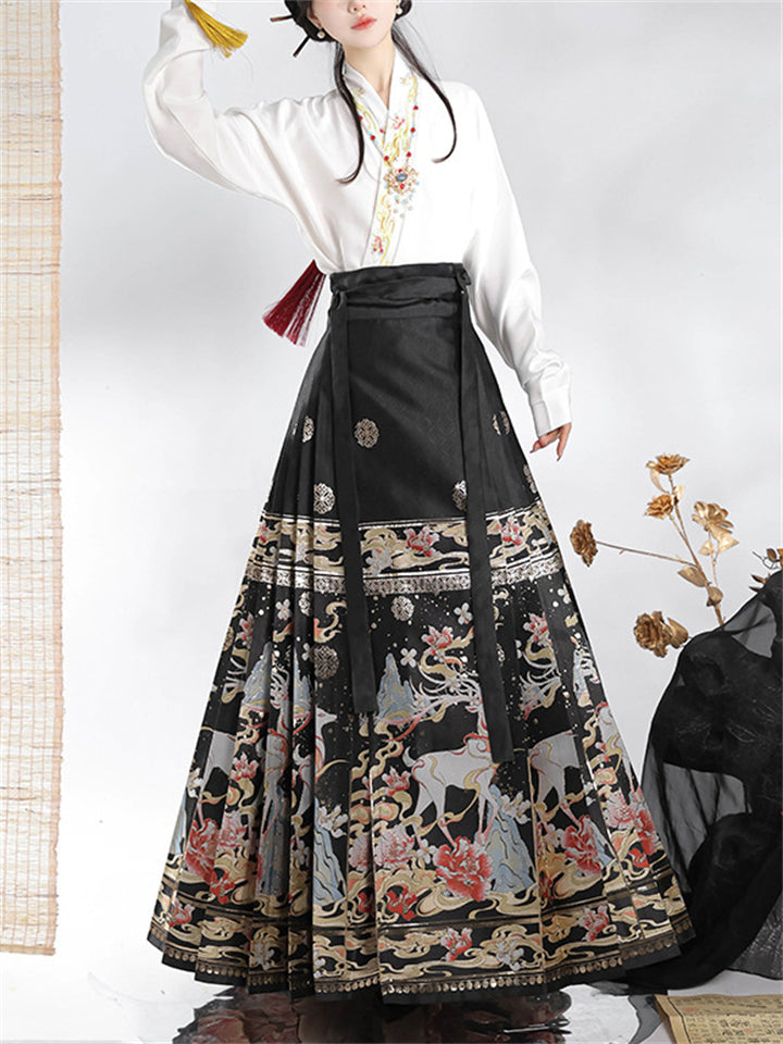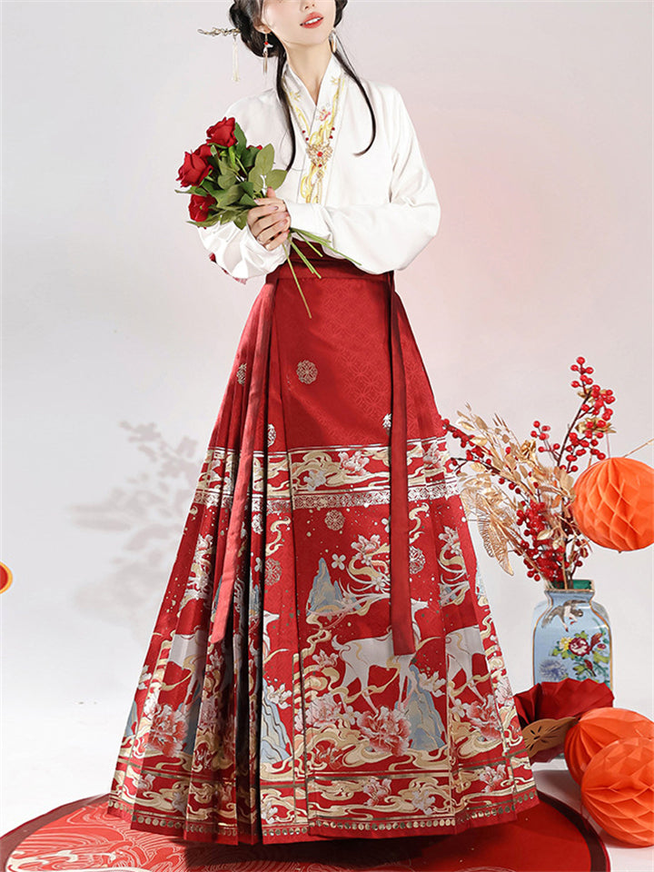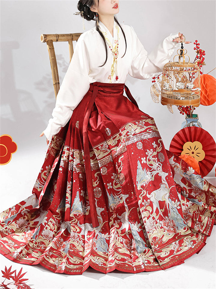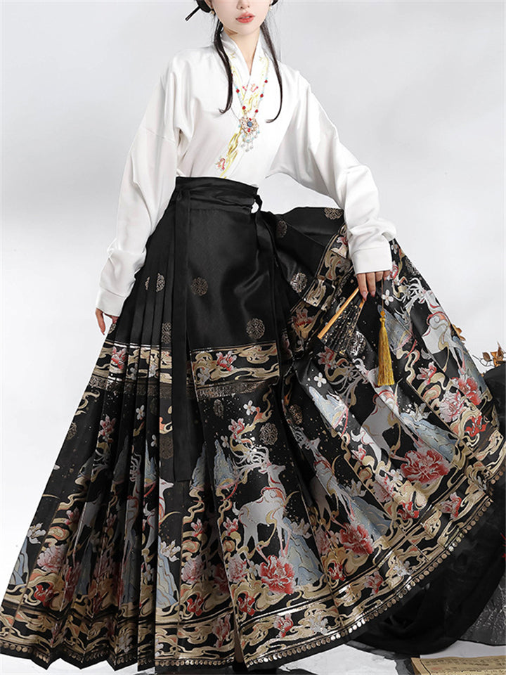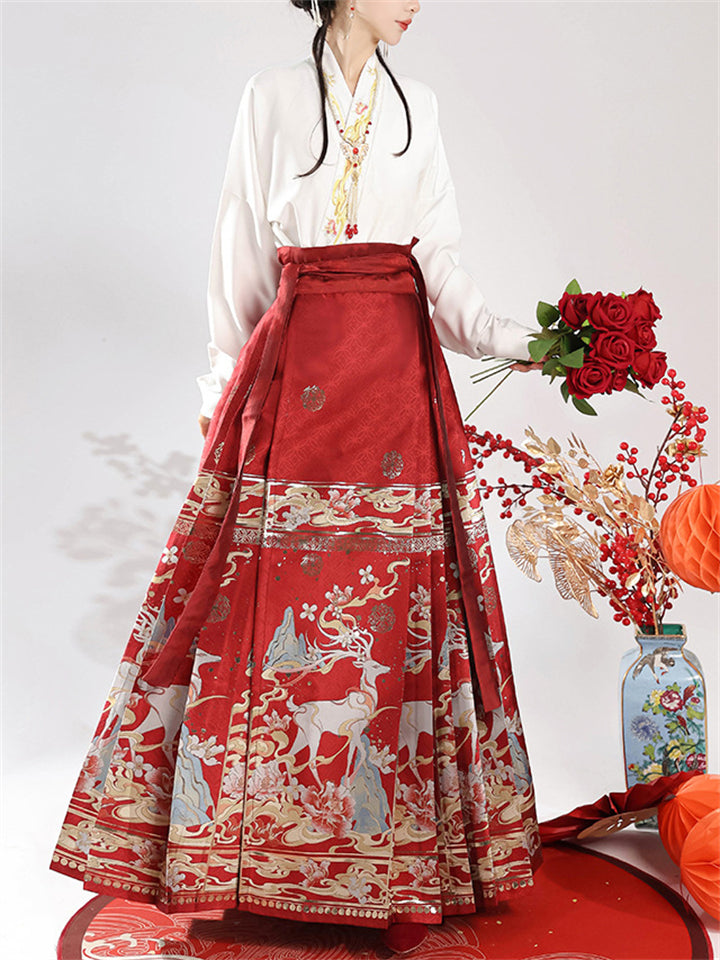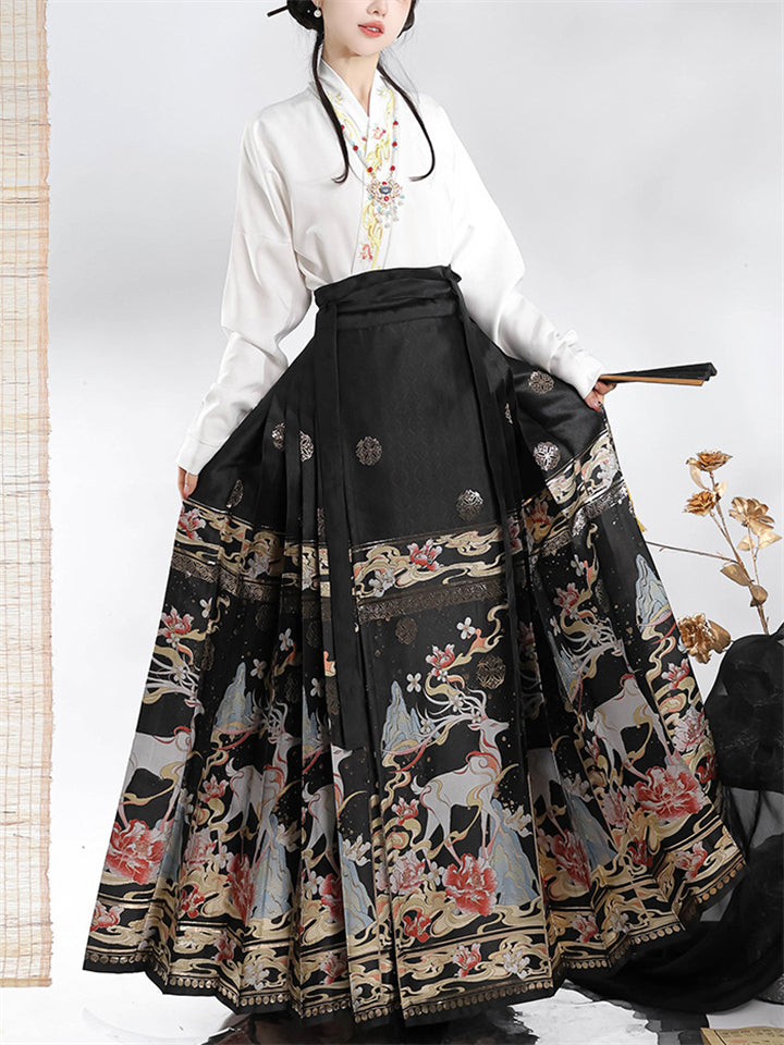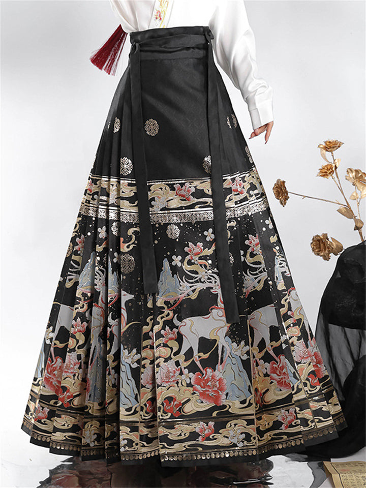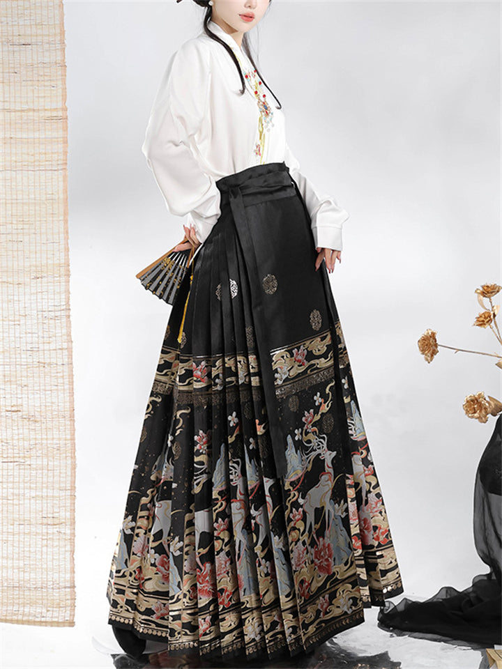 Auspicious Deer Graphic Women's Traditional Chinese Skirt