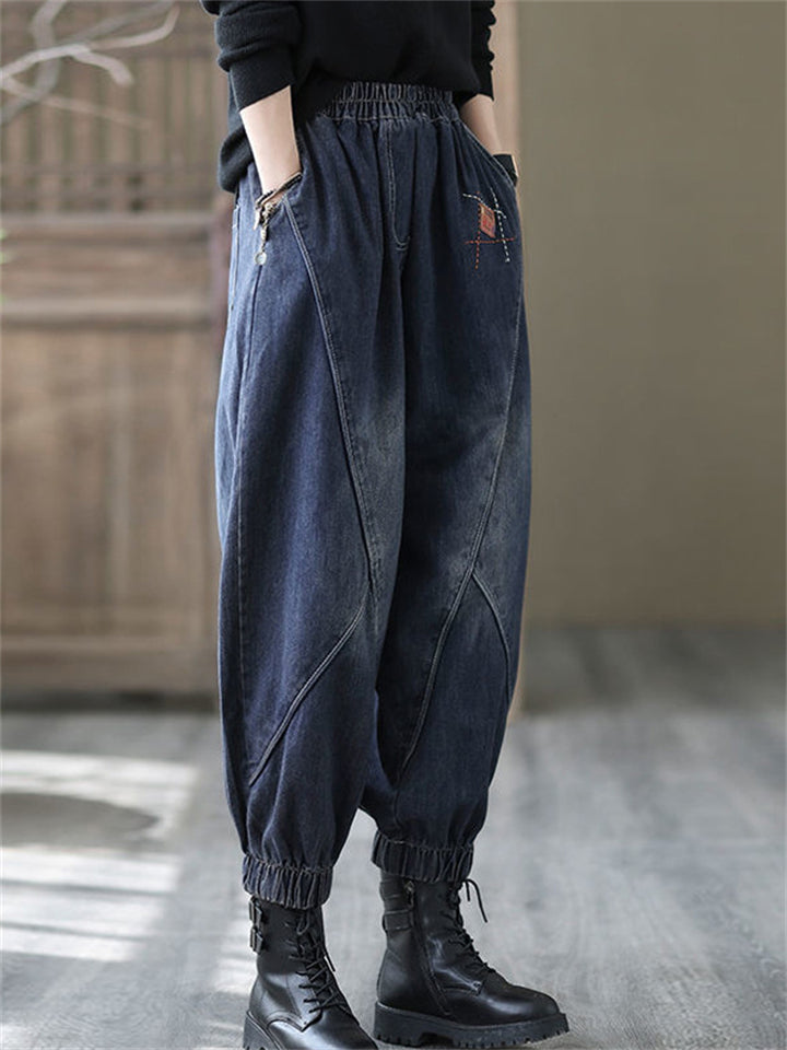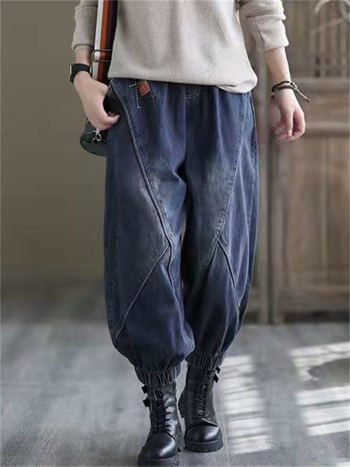Cotton Linen Long Sleeve Stitchwork Literary Women's Shirts