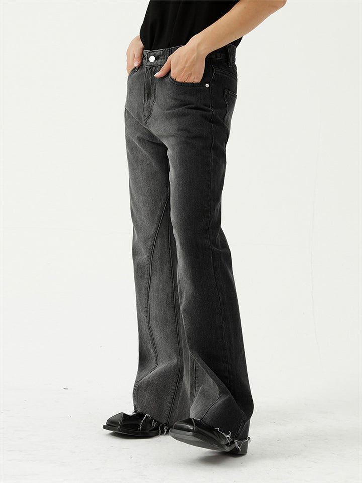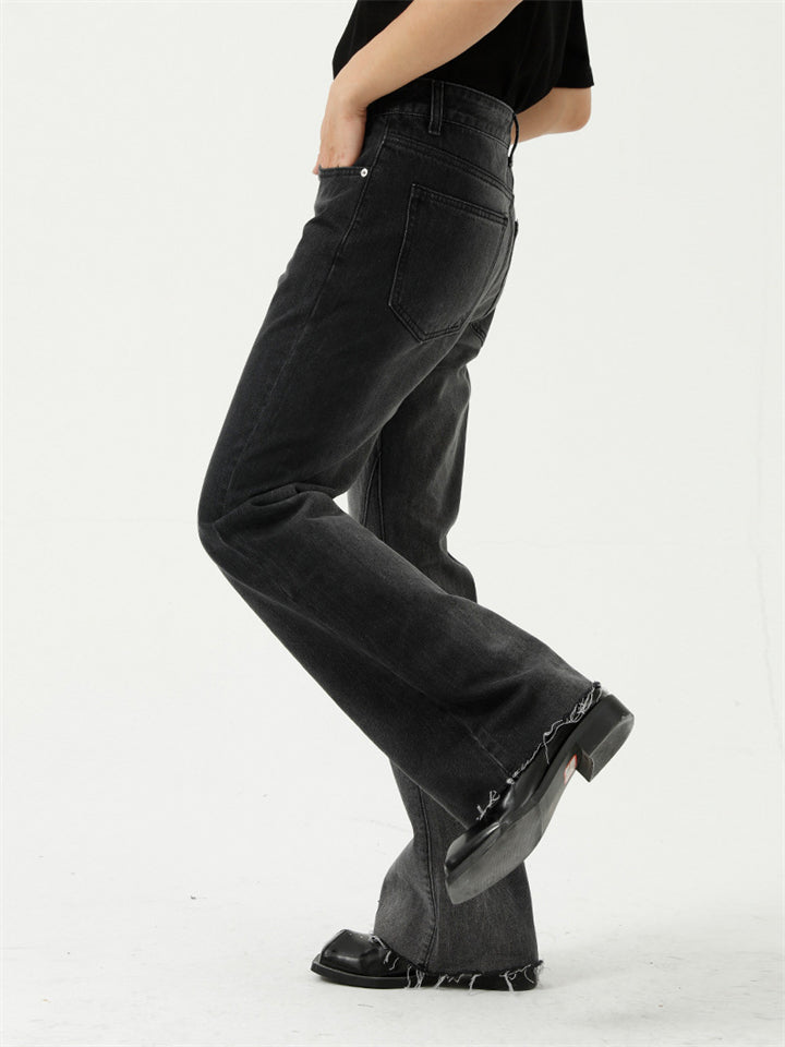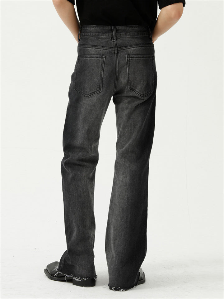 Black Gray Fit Slim Floor-Length Jeans For Men