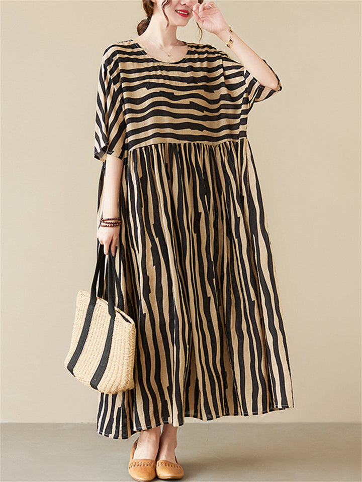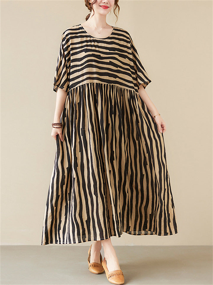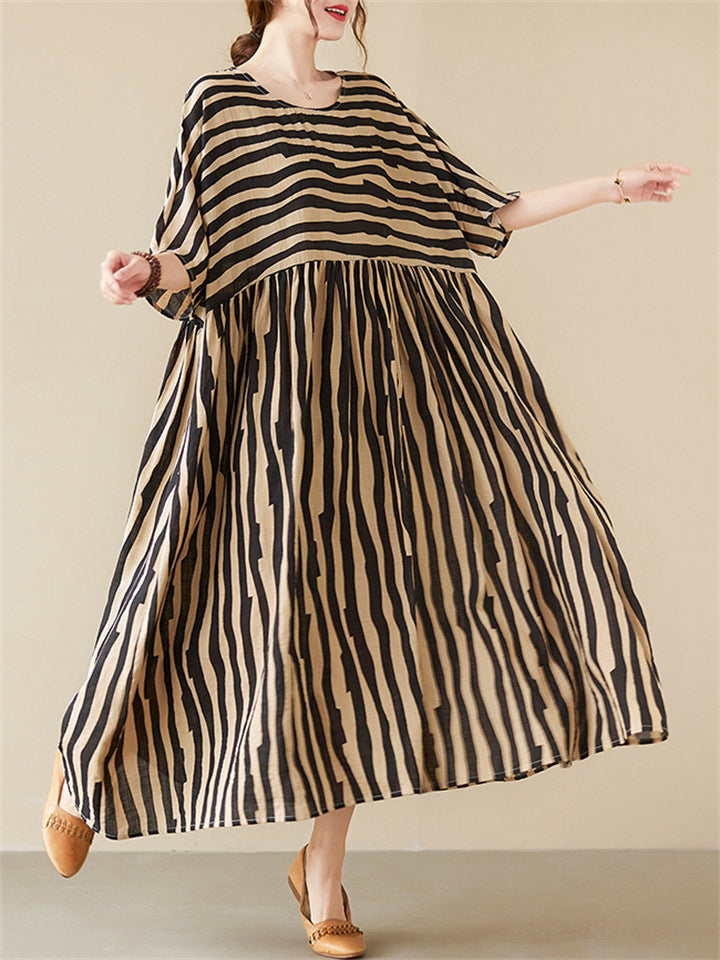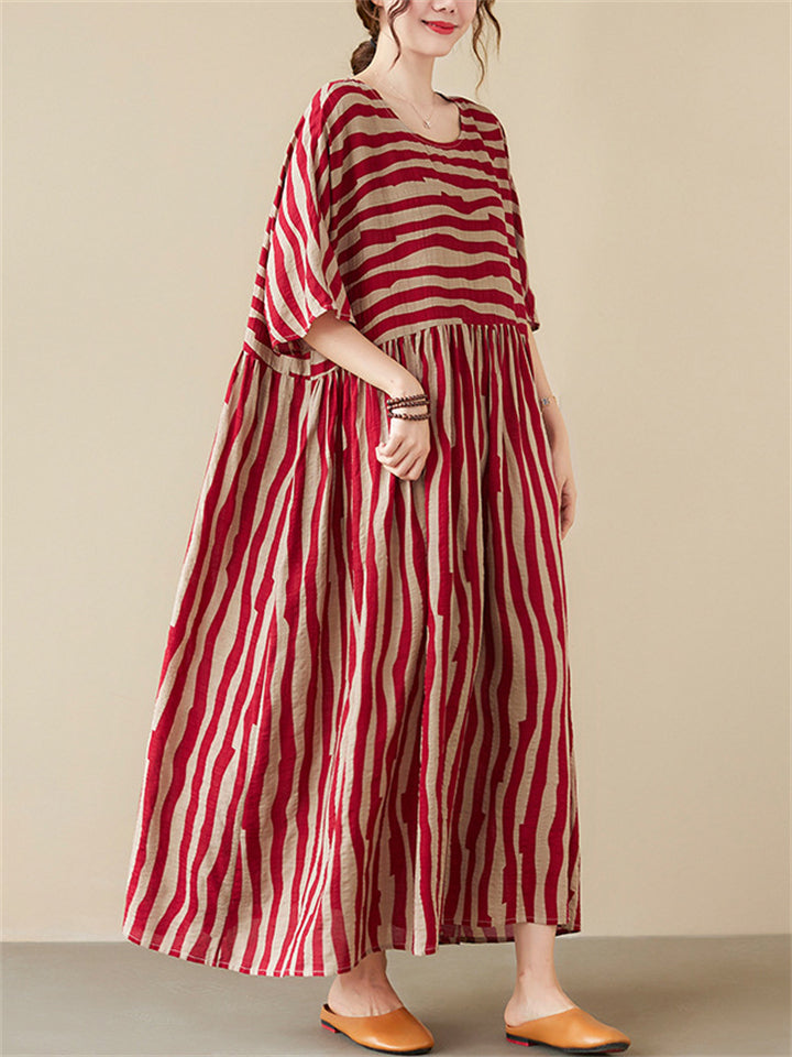 Black & Red Stripe Plus Size Dress for Lady