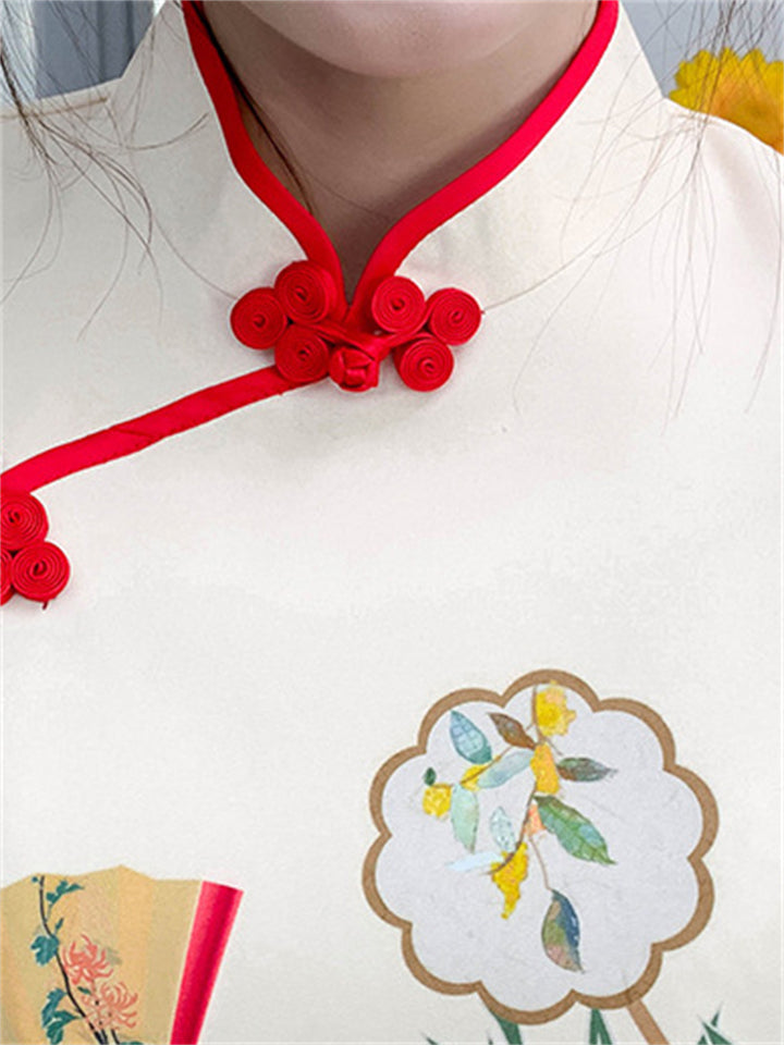 Diagonal Button Women's Spring Summer Improved Hanfu Shirt