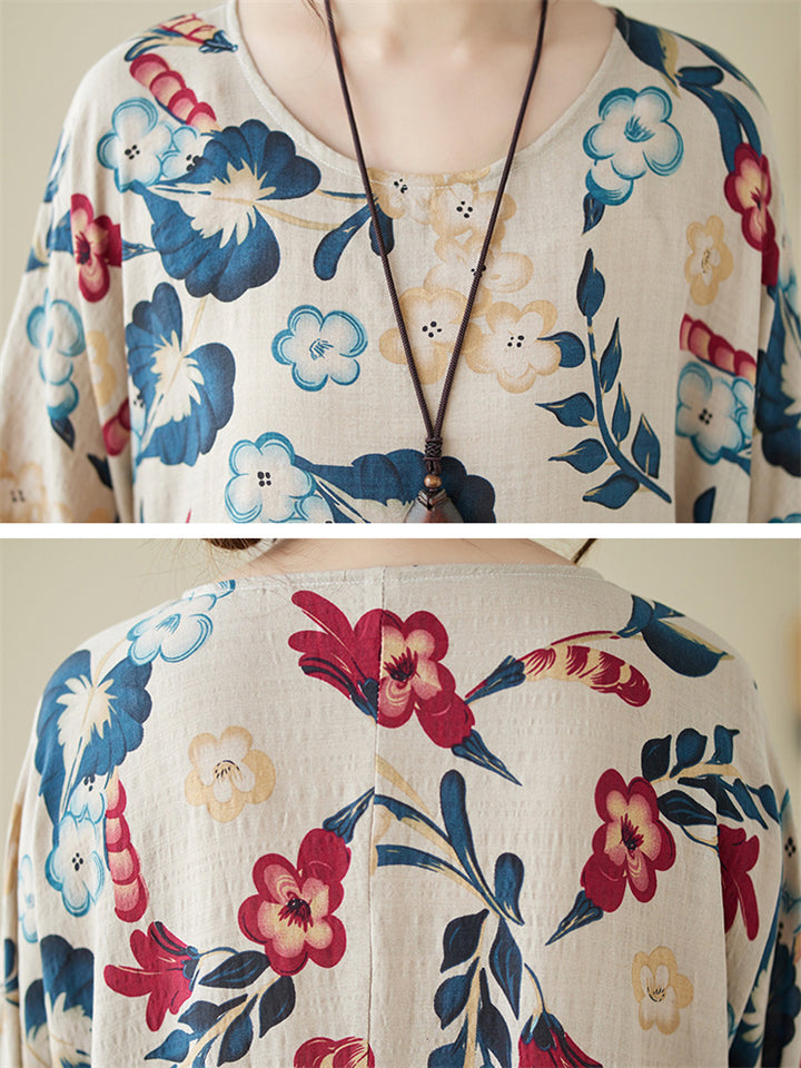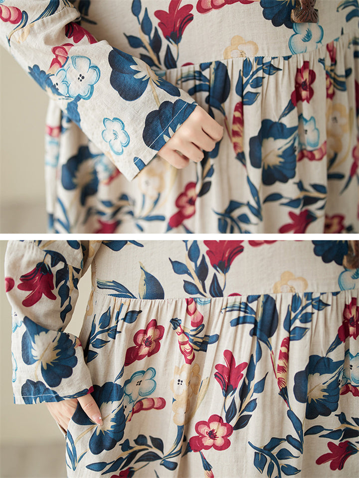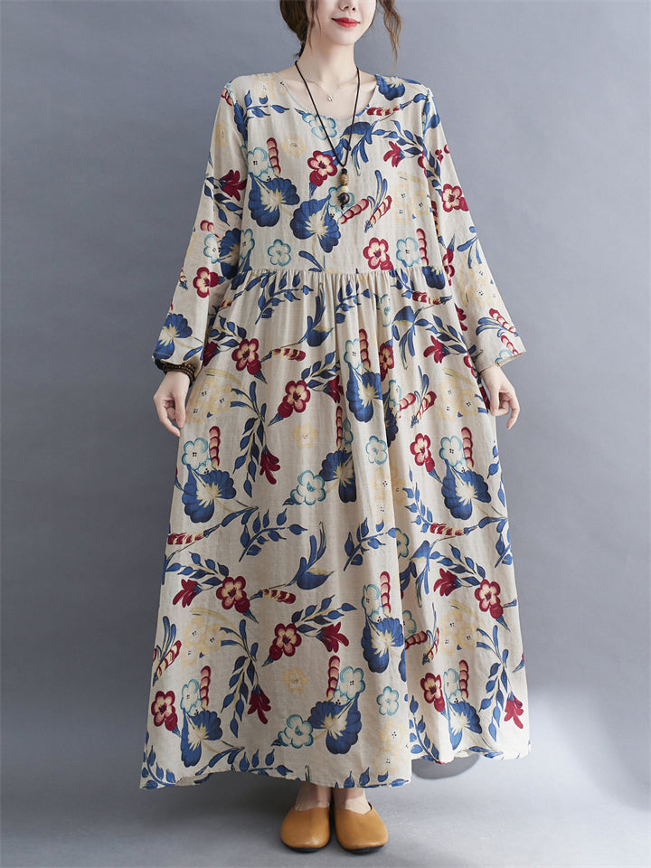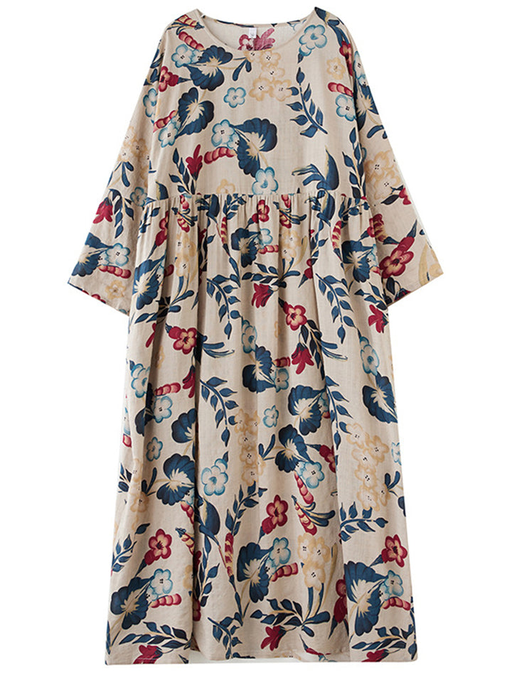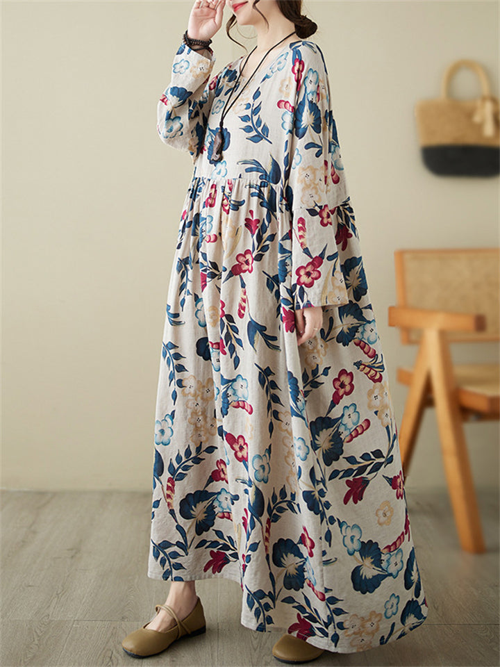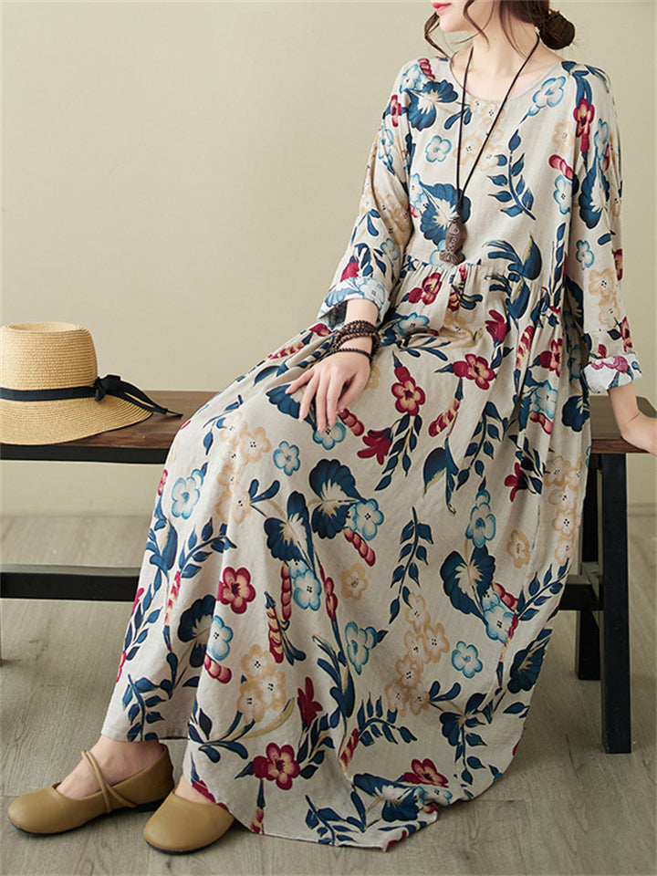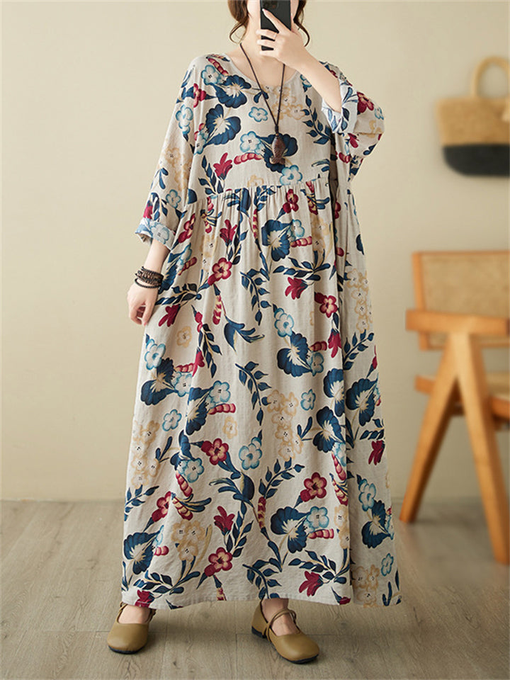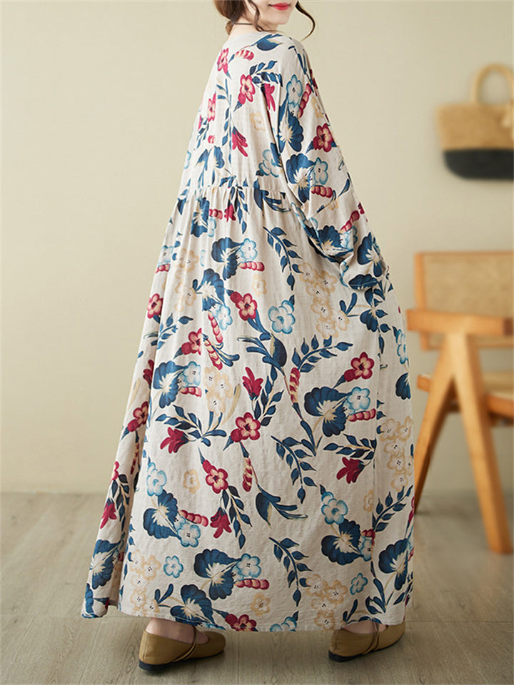 Bohemian Style Floral Print Oversized Women Holiday Long Dress
