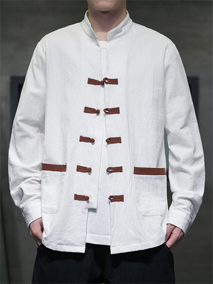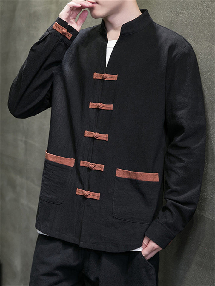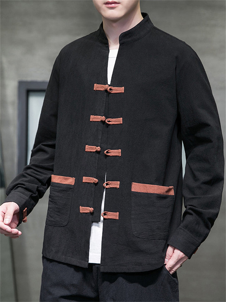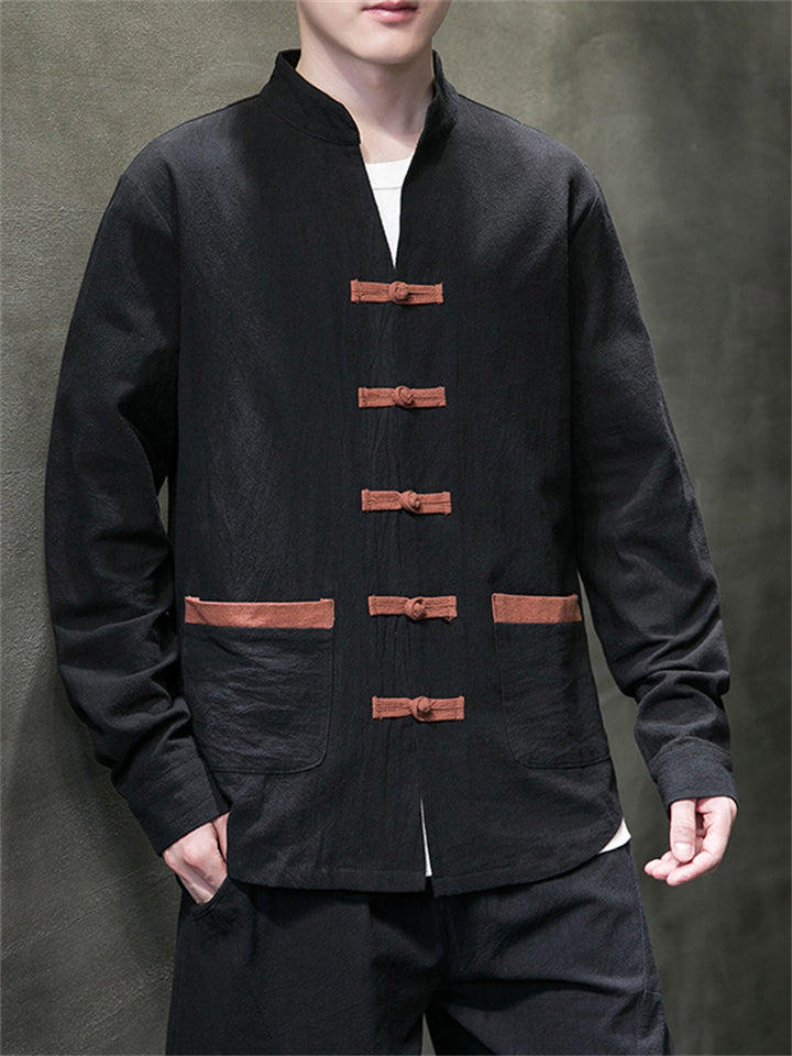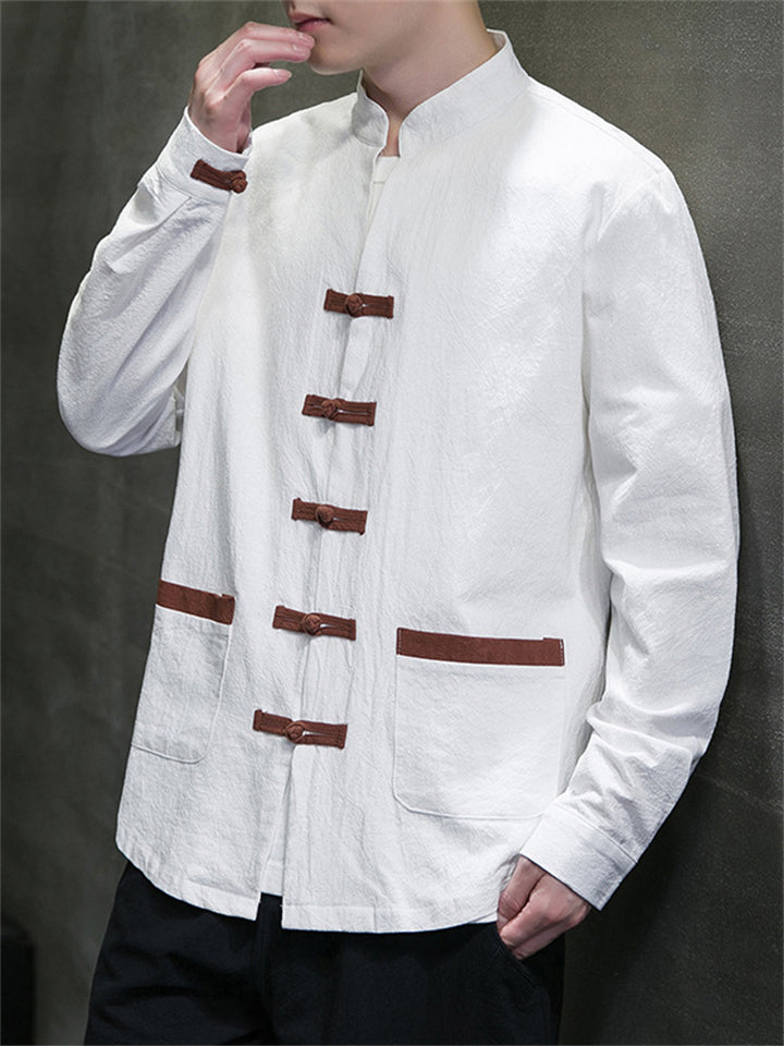 Buttoned Long-sleeved Tang Suit Shirts for Men