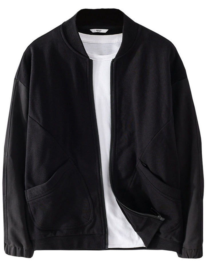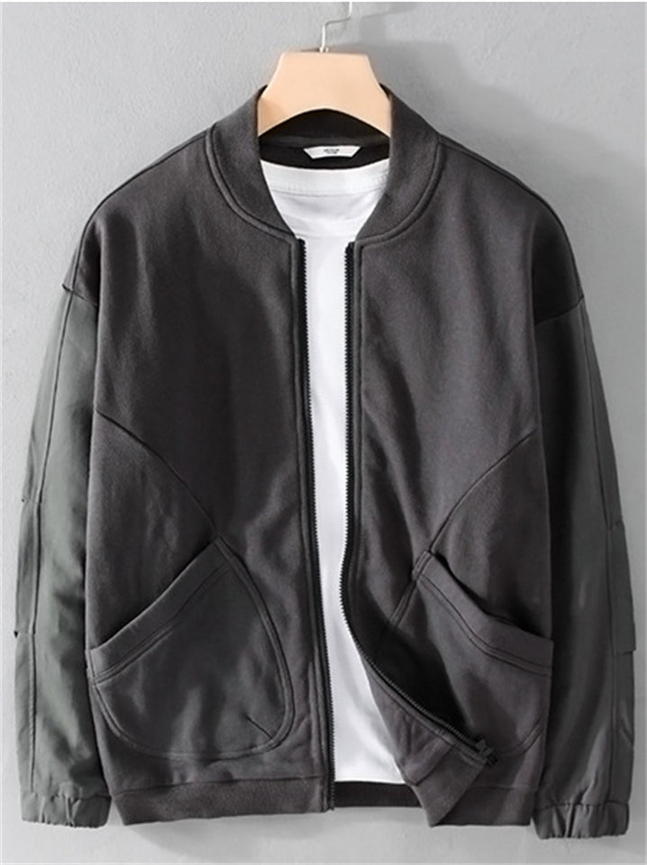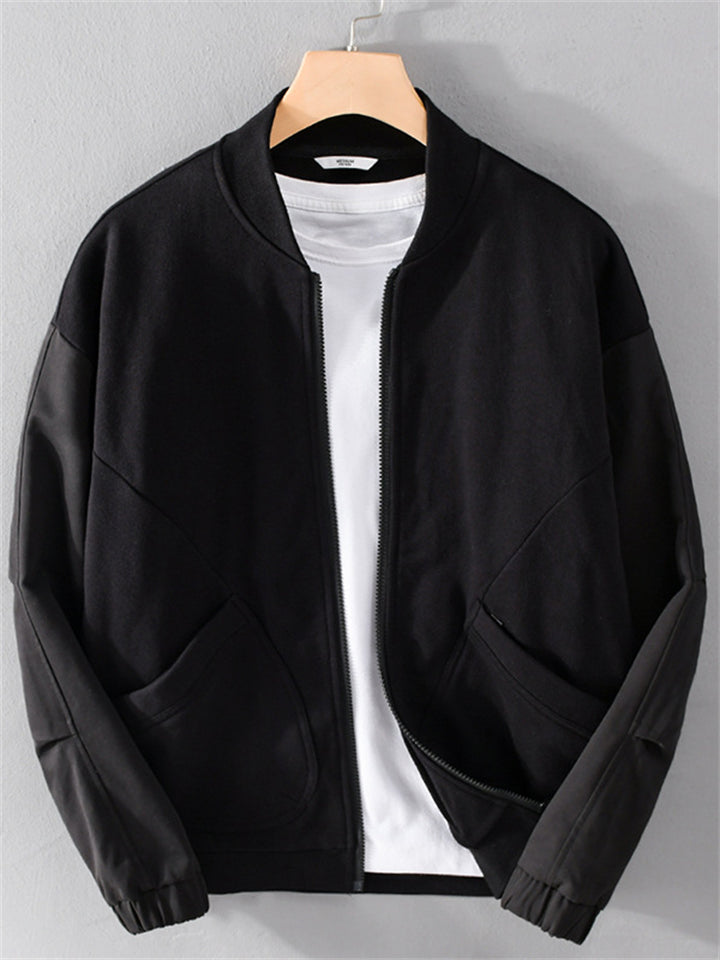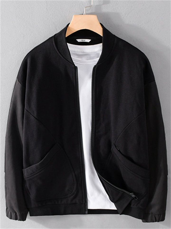Casual Cotton Solid Color Pockets Baseball Collar Jacket for Men