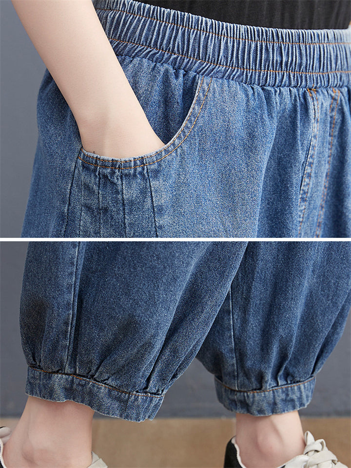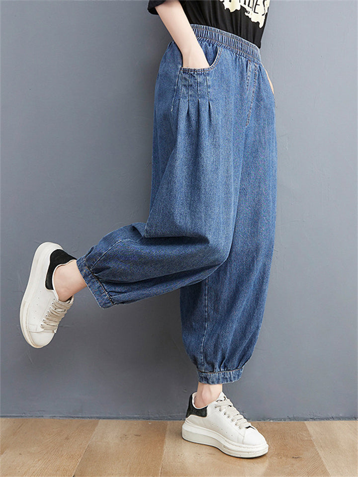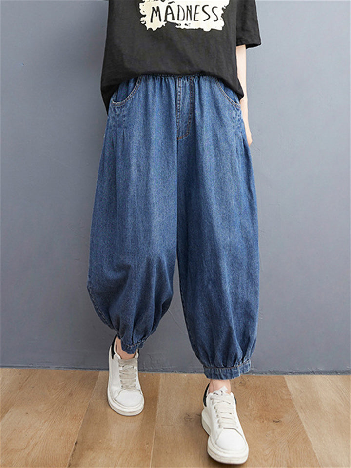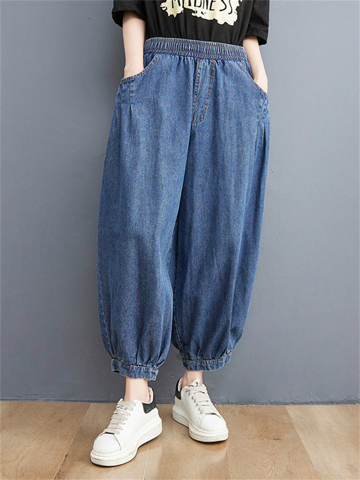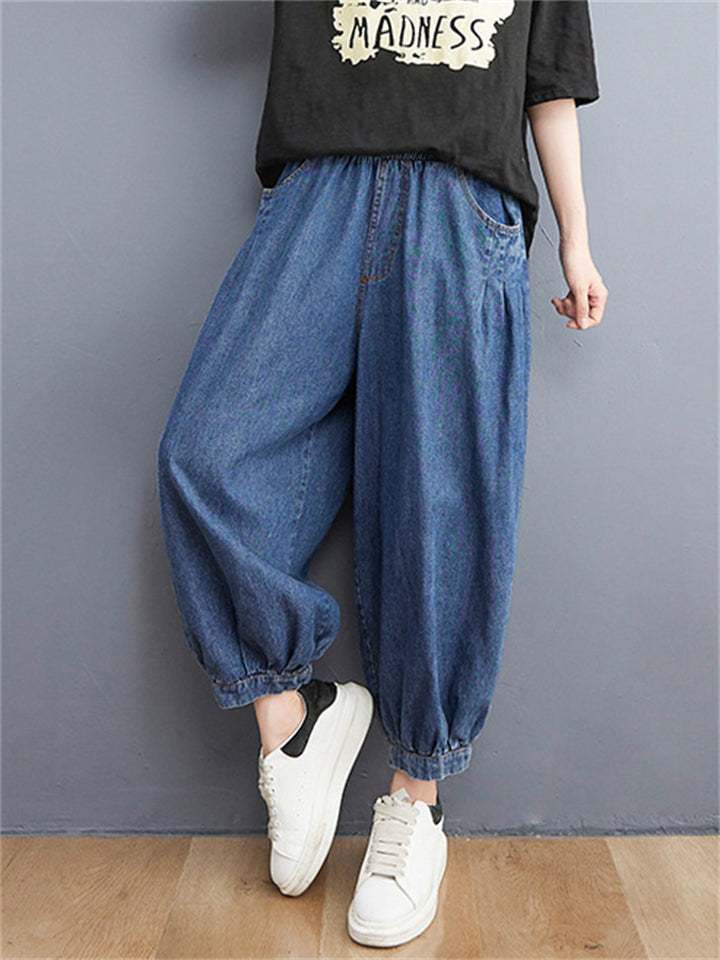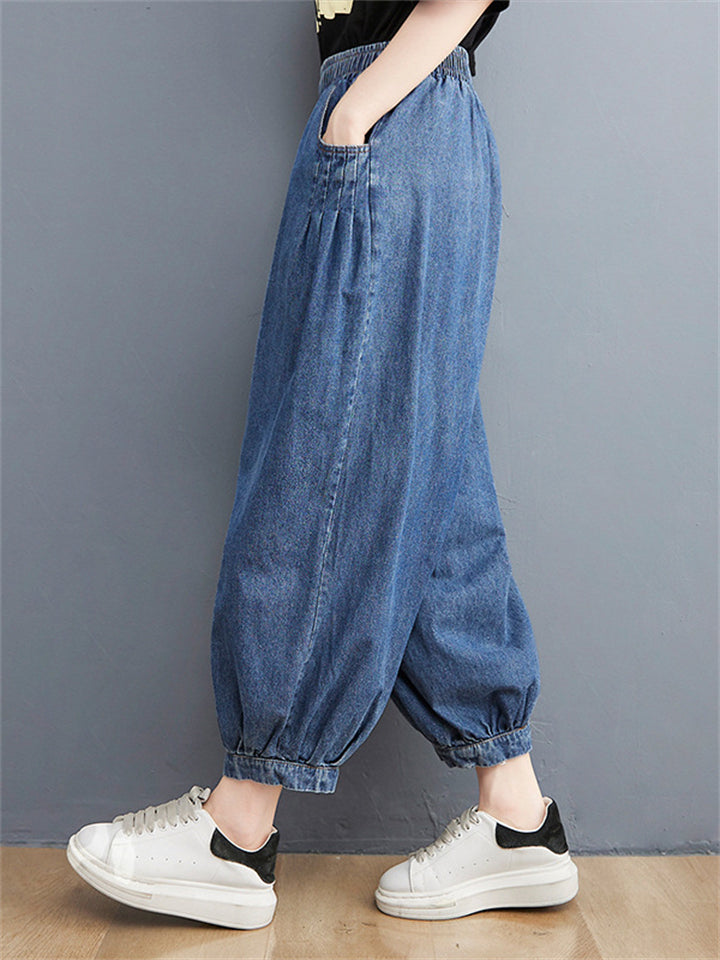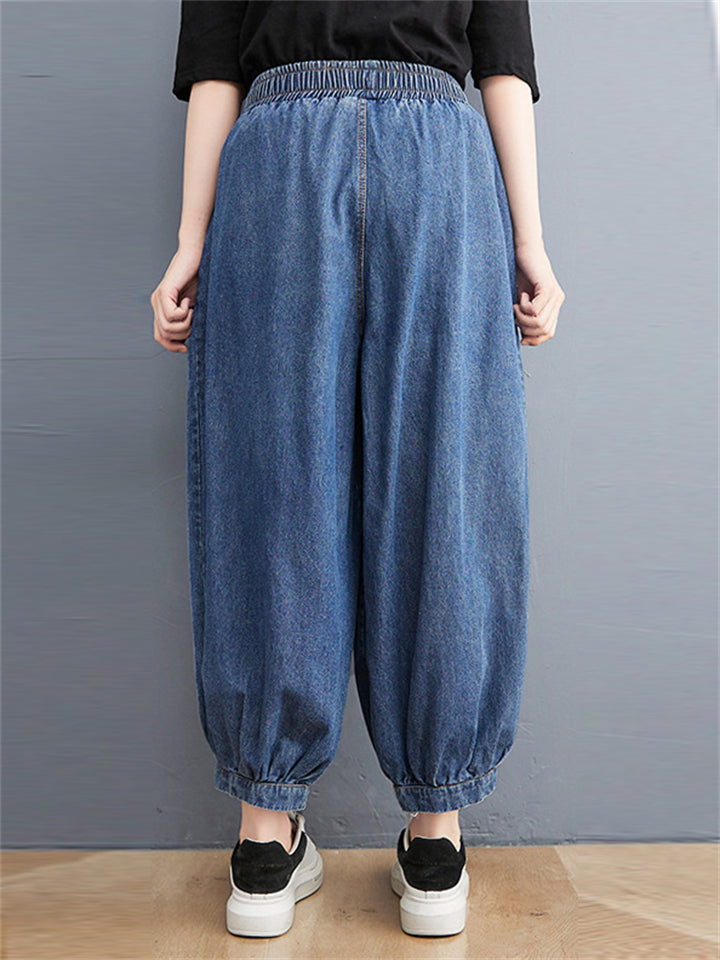 Casual Loose Blue High Waist Harem Jeans for Women