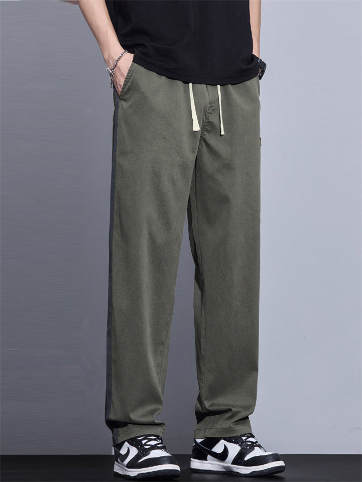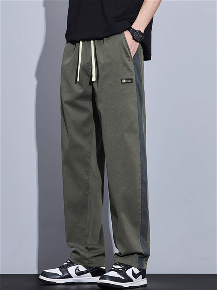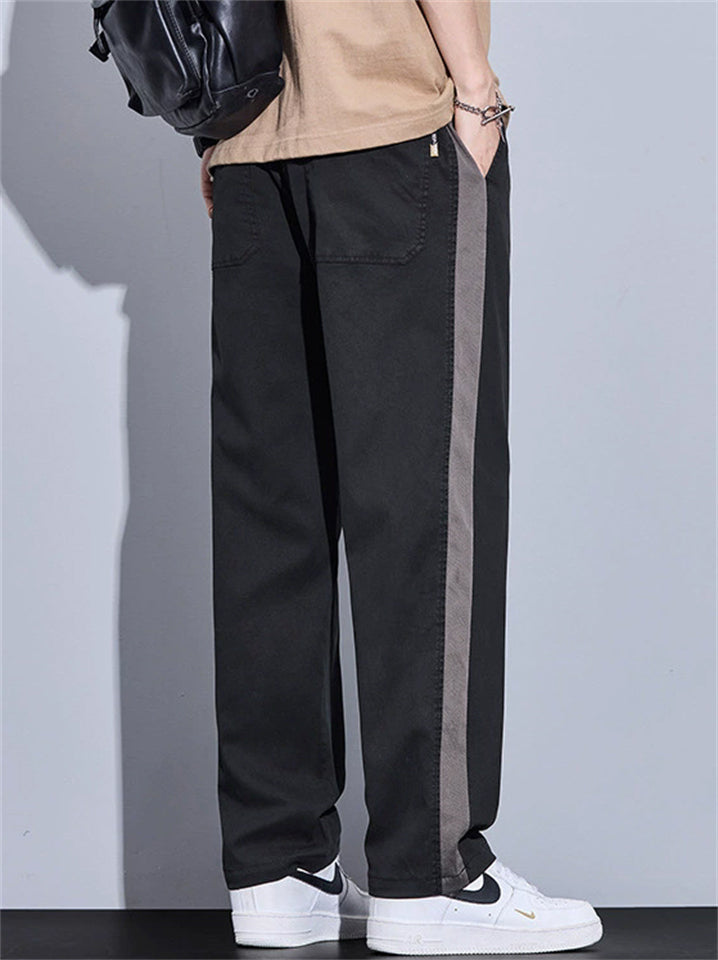 Casual Loose Fit Side Stripe Straight Leg Pants for Men