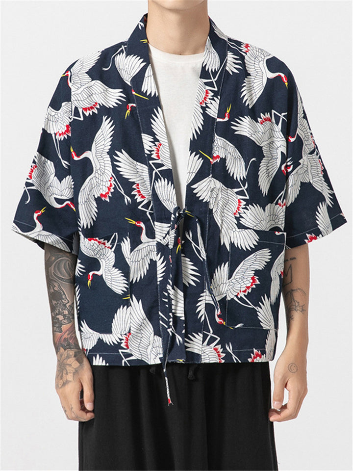 Summer Cool Crane Short Streetwear Korean Style Men's Outfits