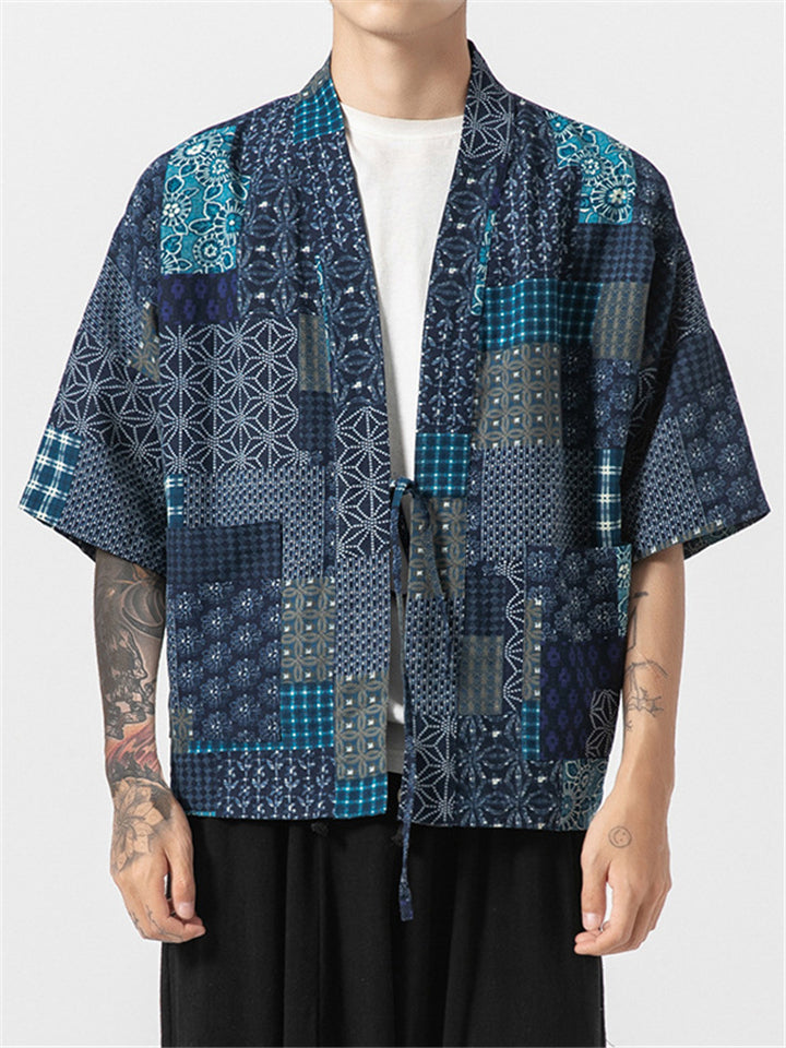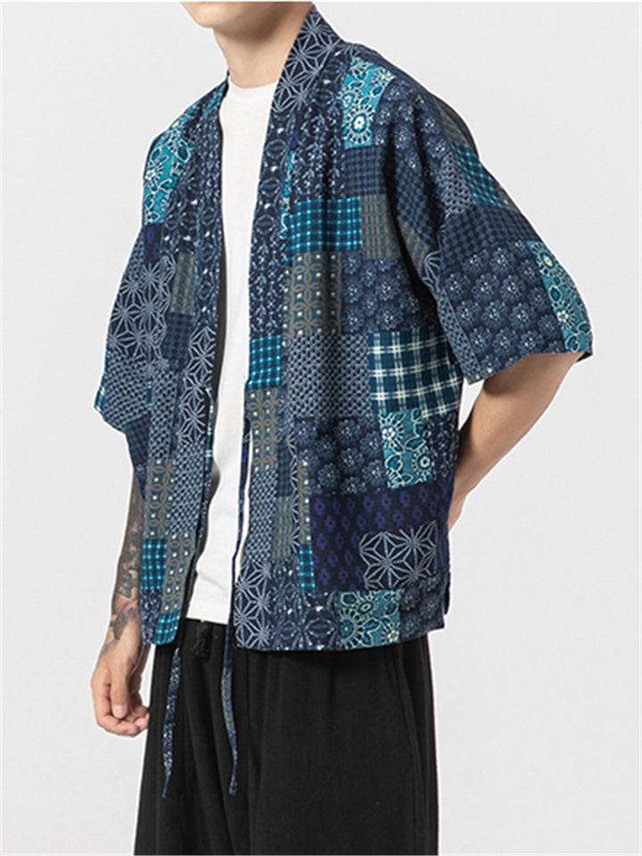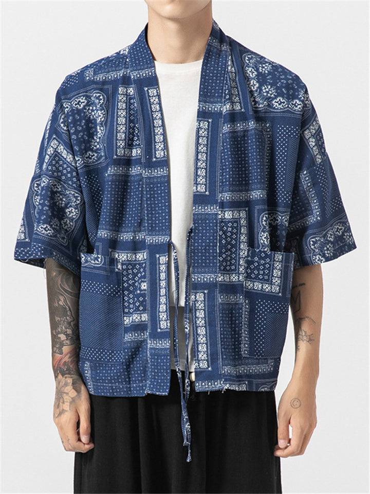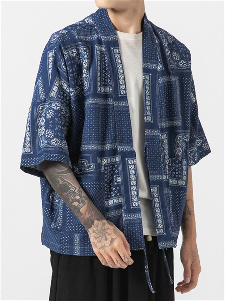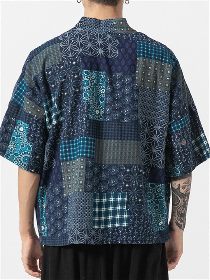 Men's Retro Dragon Tiger Print Summer Cardigan Shirt