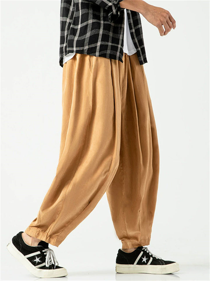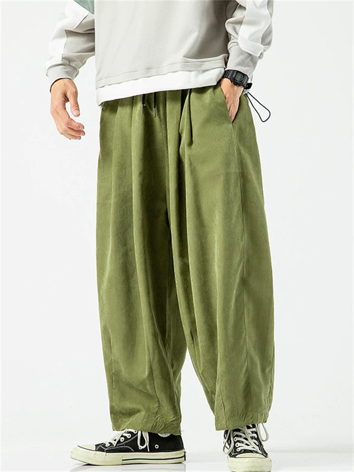 Casual Wide Leg Drawstring Cropped Pants for Men
