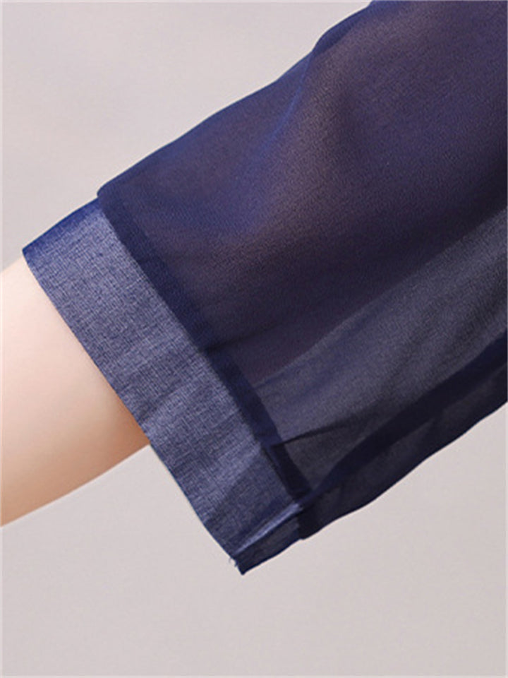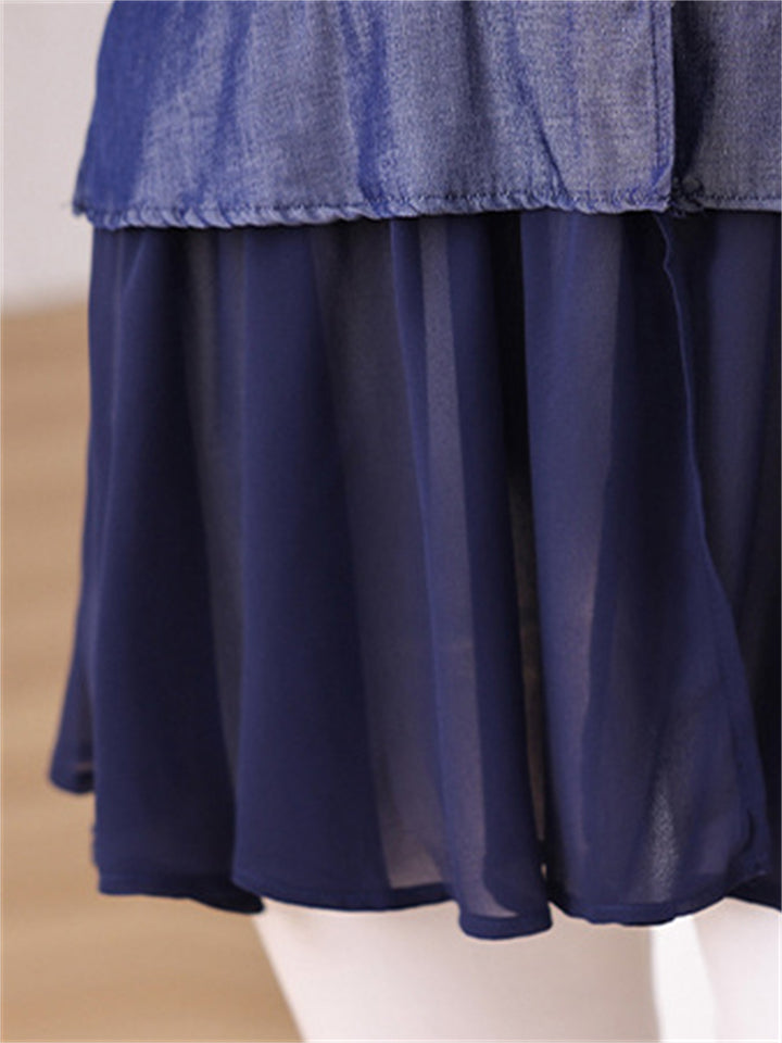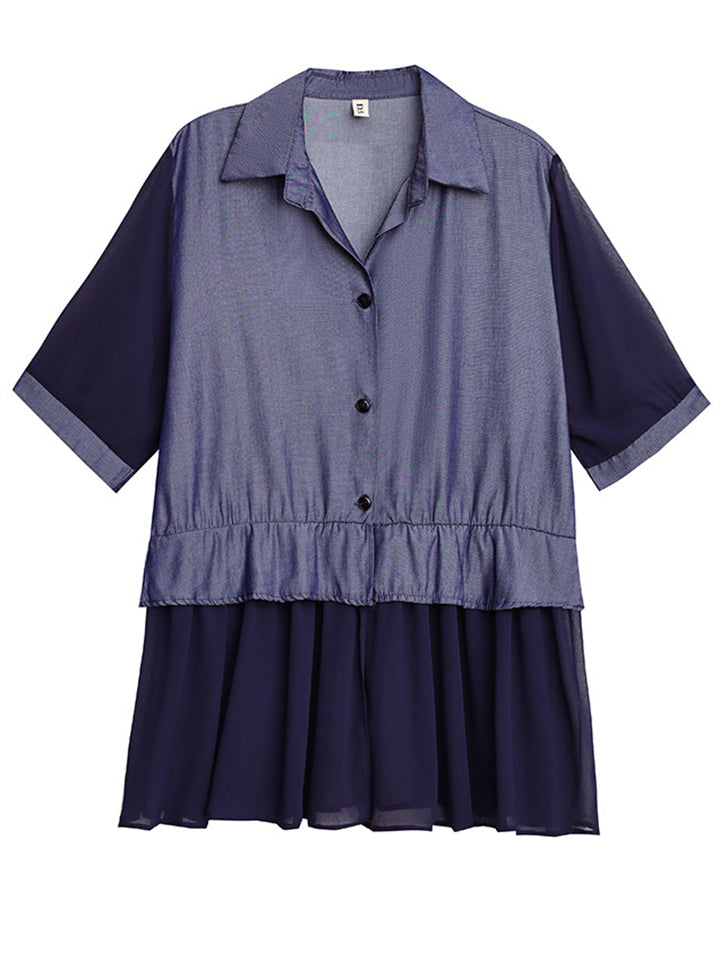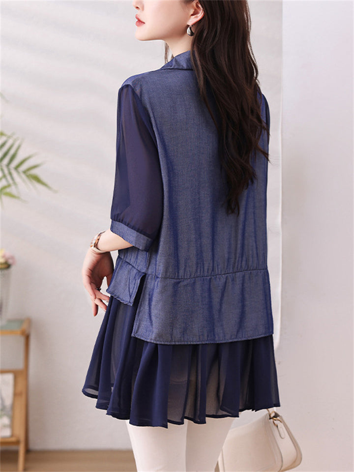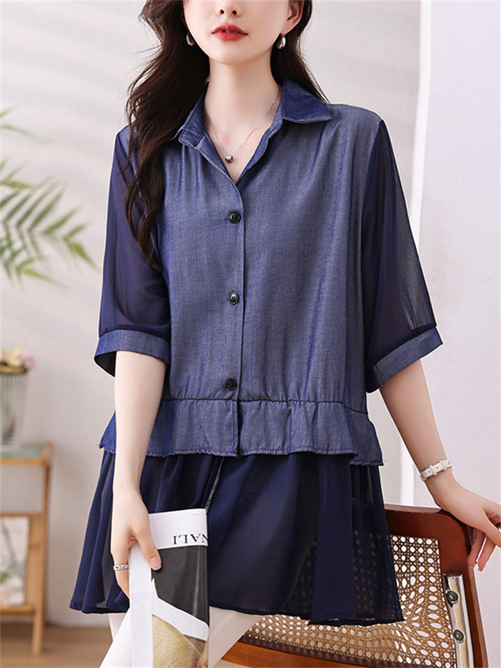 Chiffon Patchwork Blue Lapel Shirt for Women
