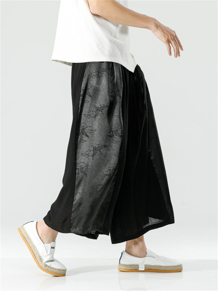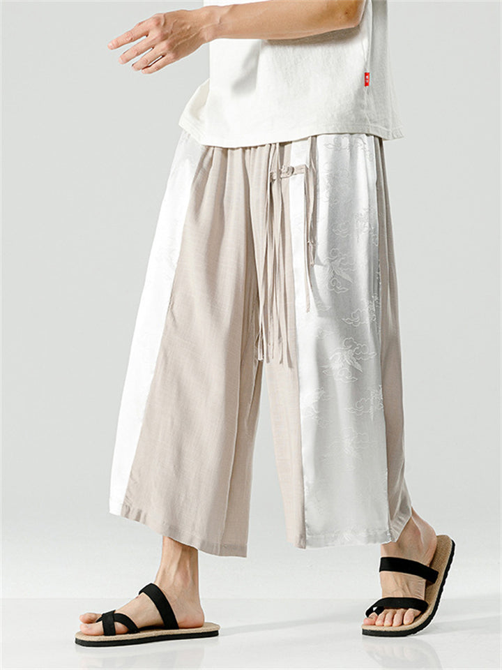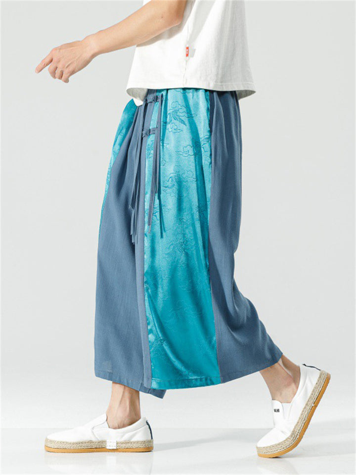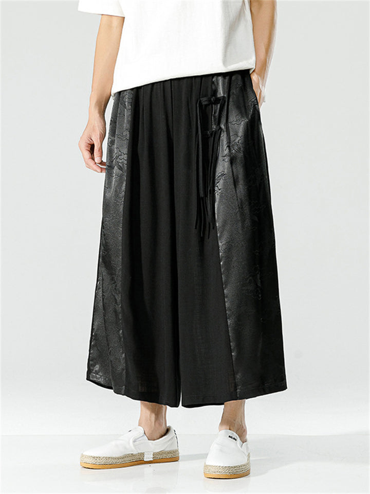 Chinese Style Cloud Jacquard Tassel Button Pants for Men