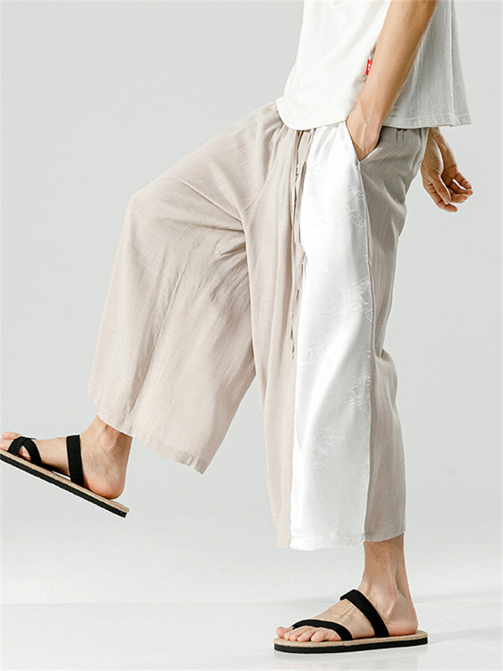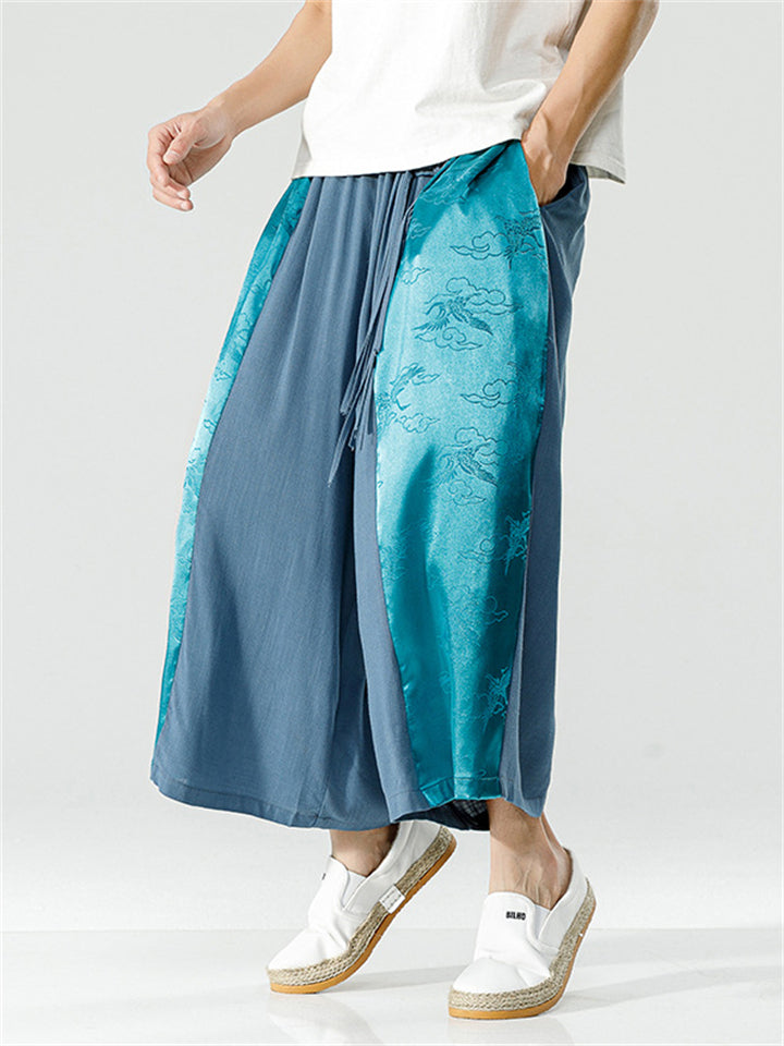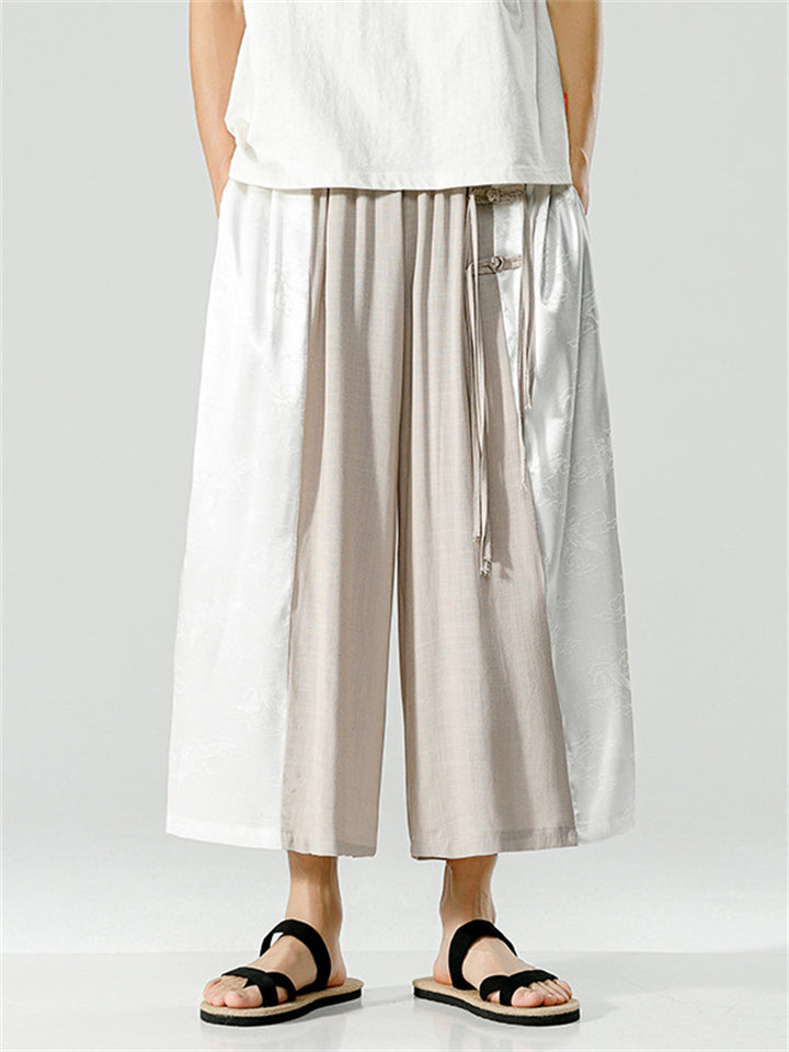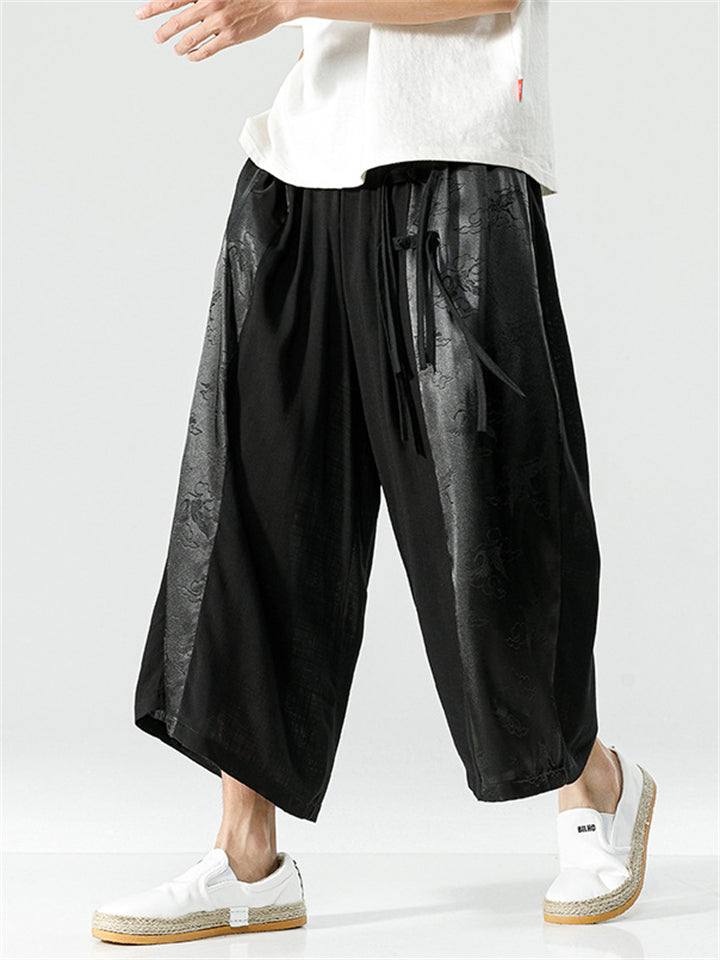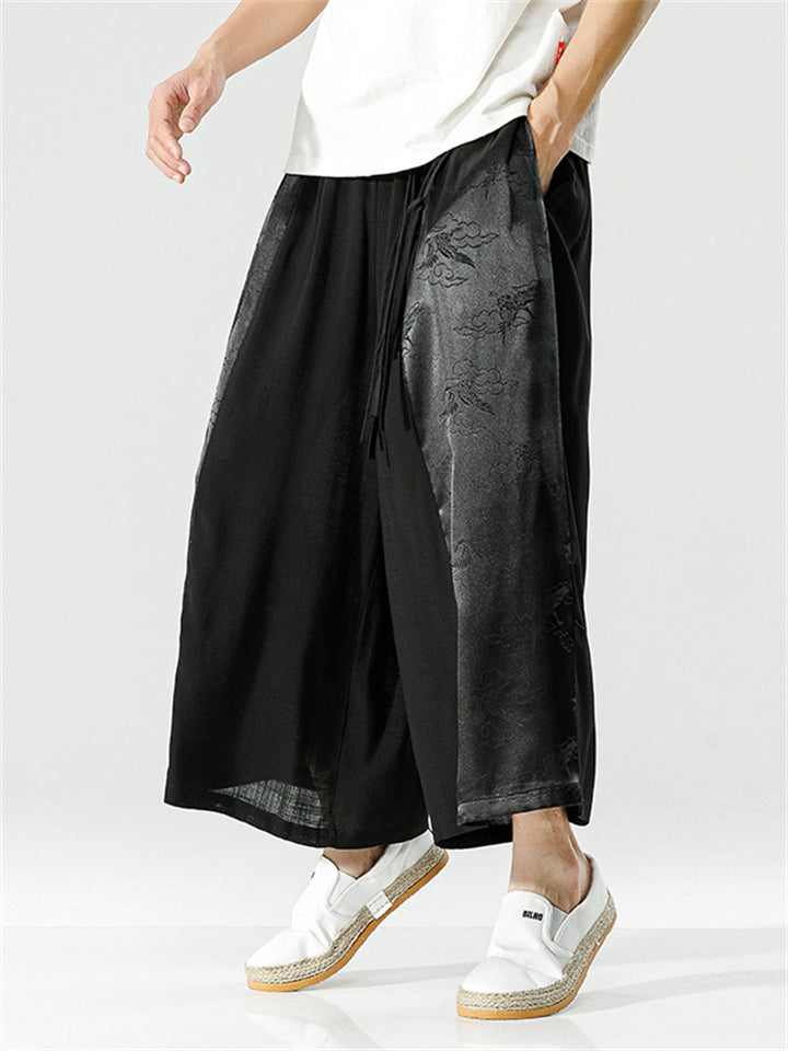 Chinese Style Cloud Jacquard Tassel Button Pants for Men