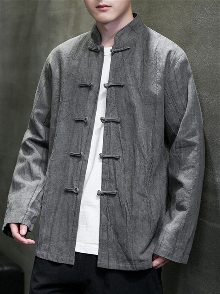 Chinese Style Knot Button Cozy Kung Fu Jacket for Men