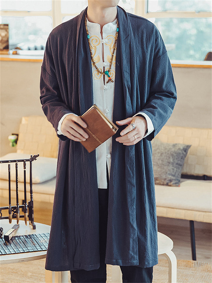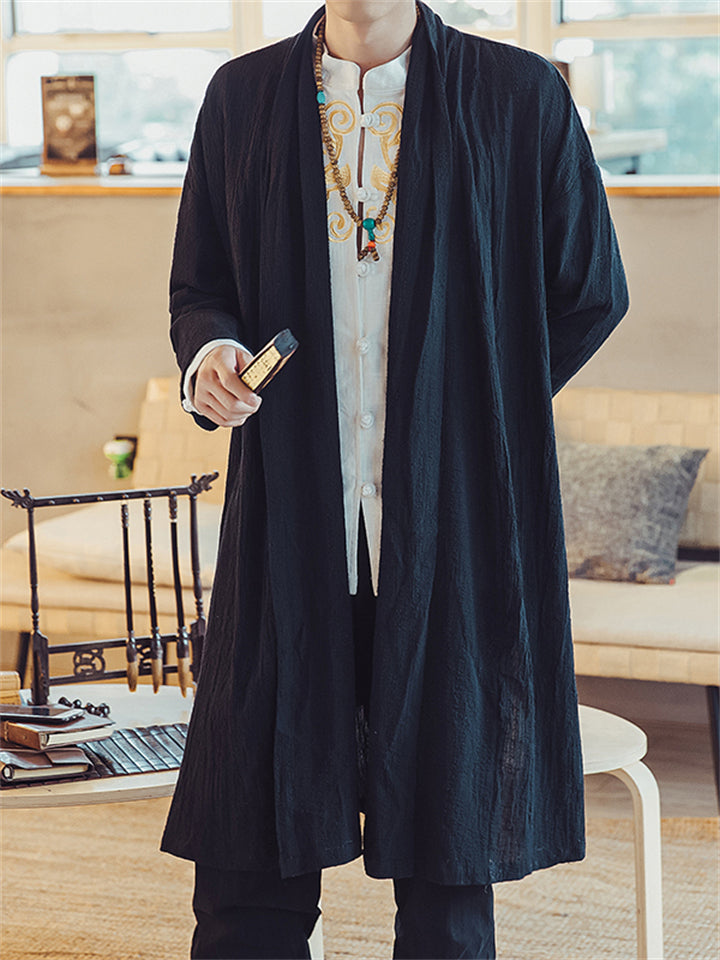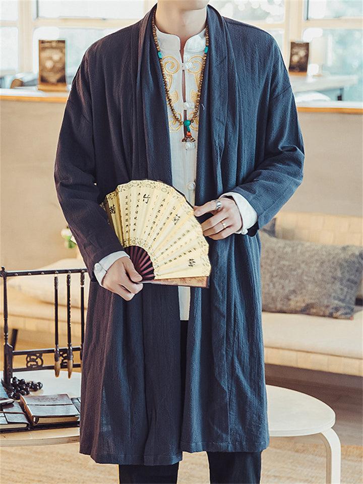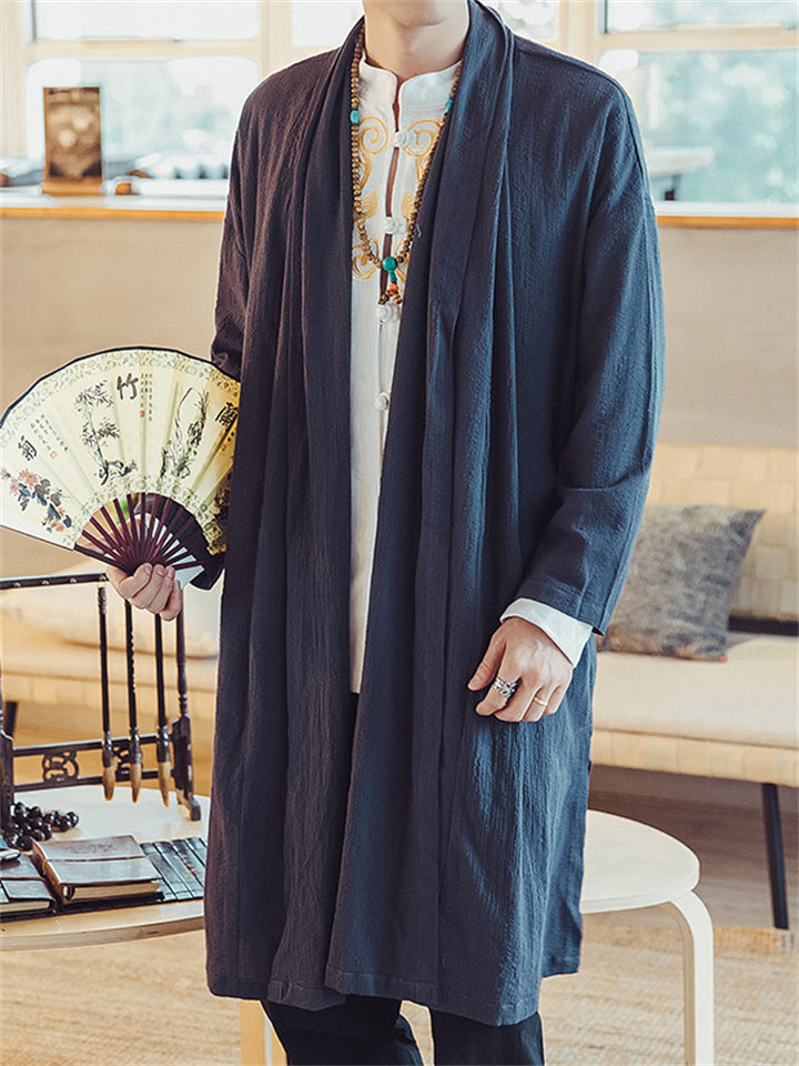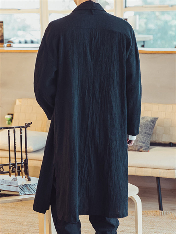 Chinese Style Linen Plus Size Mid Long Jackets For Men