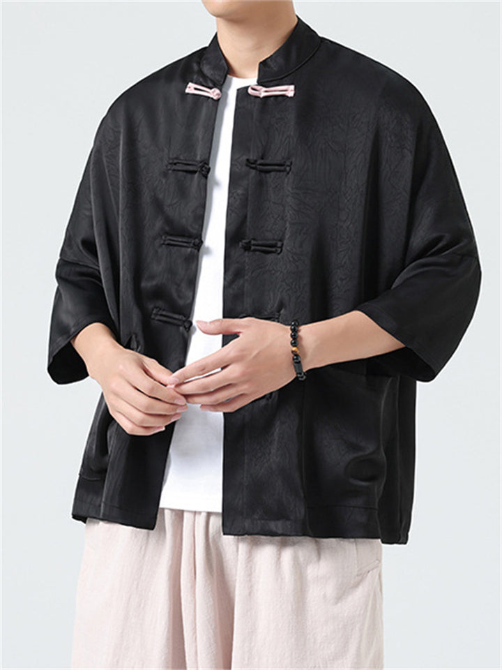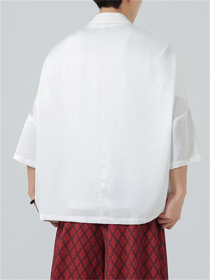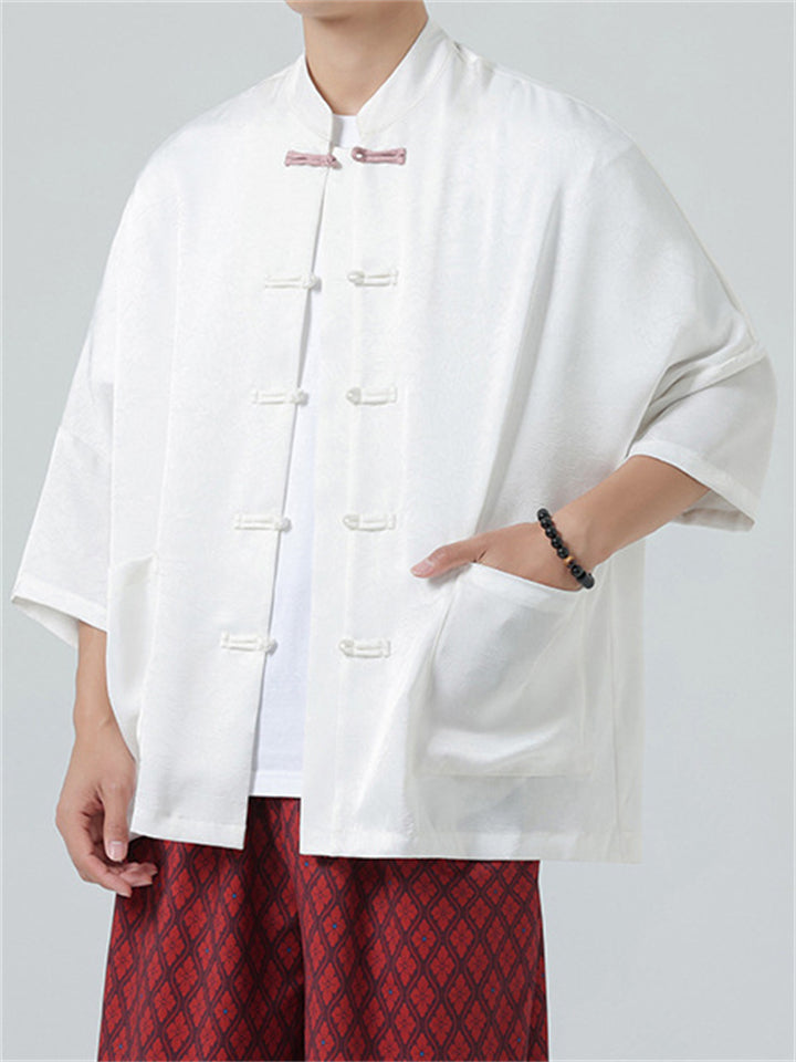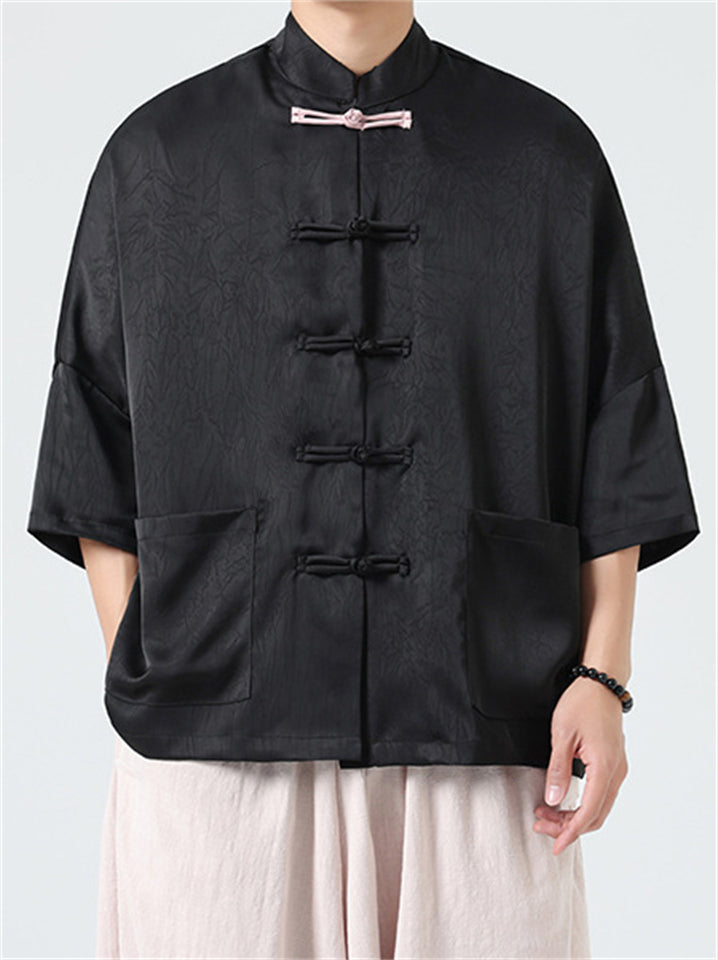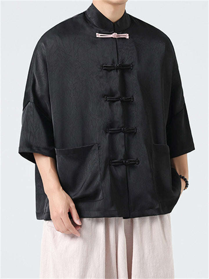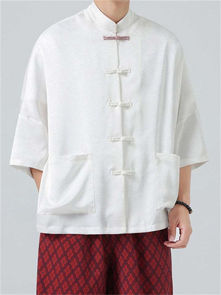 Chinese Style Short Sleeve Drop Shoulder Tang Suit Shirts for Men