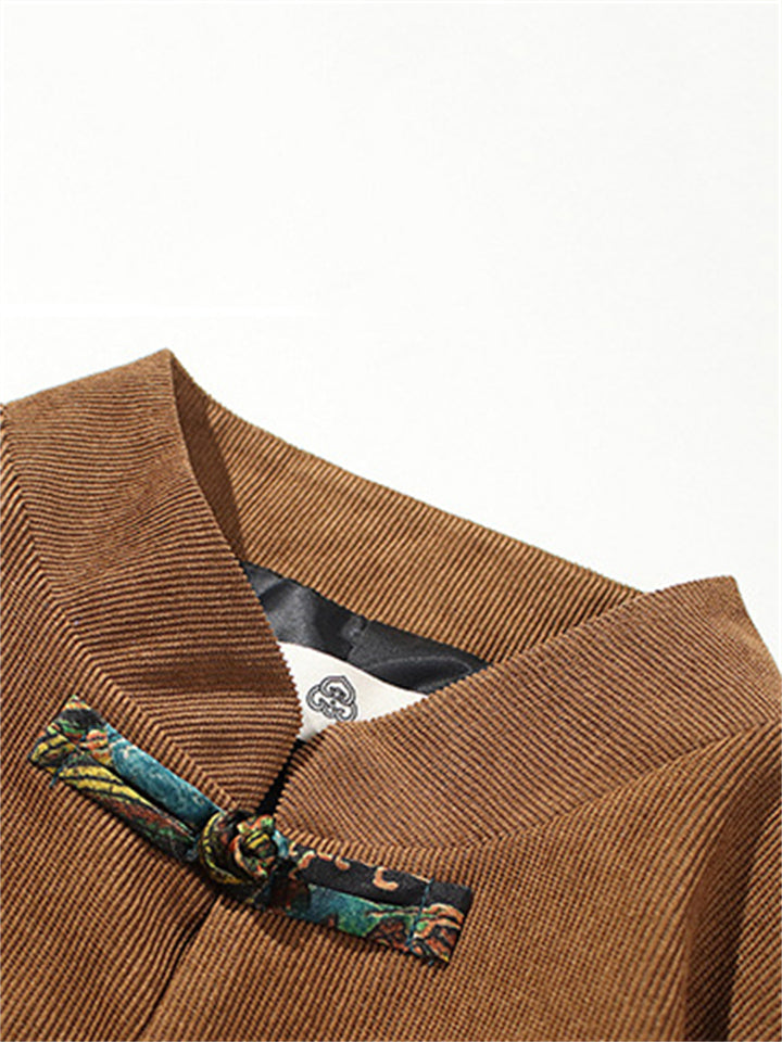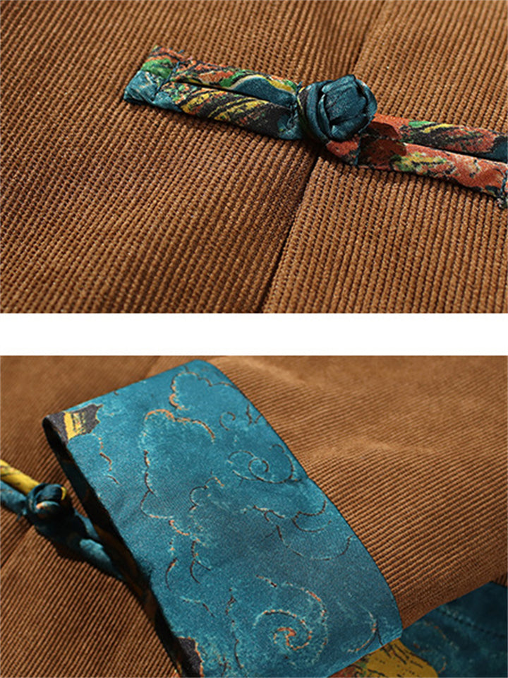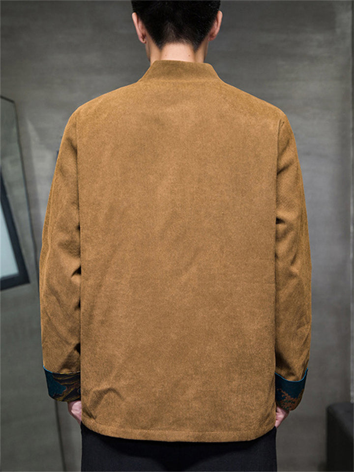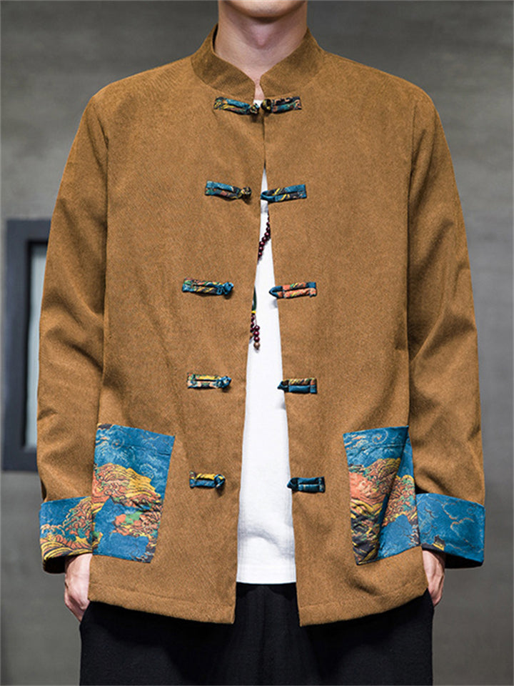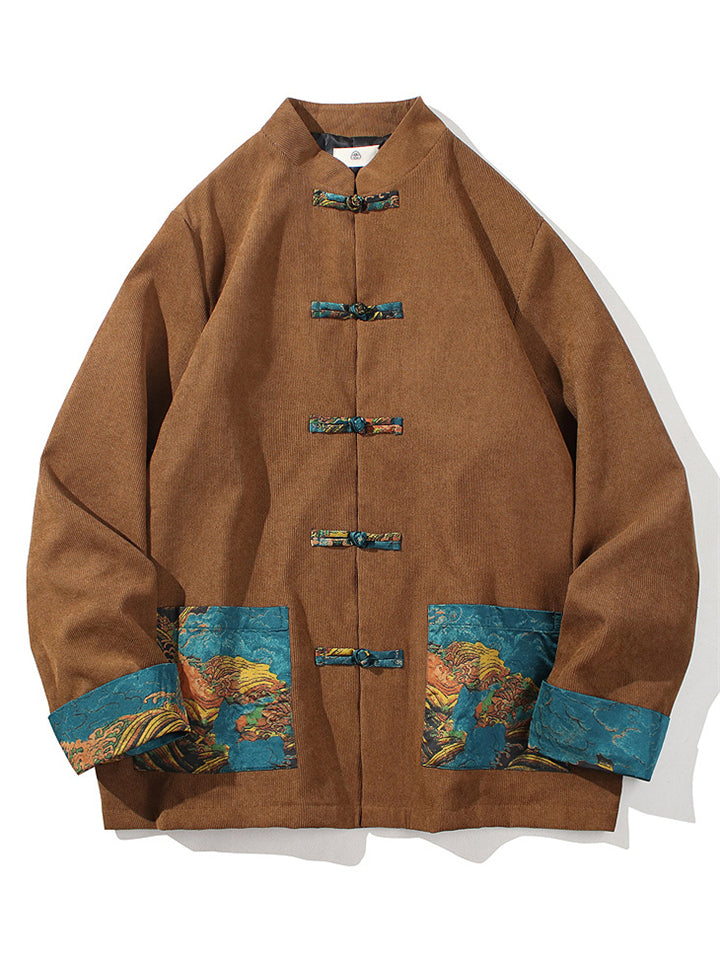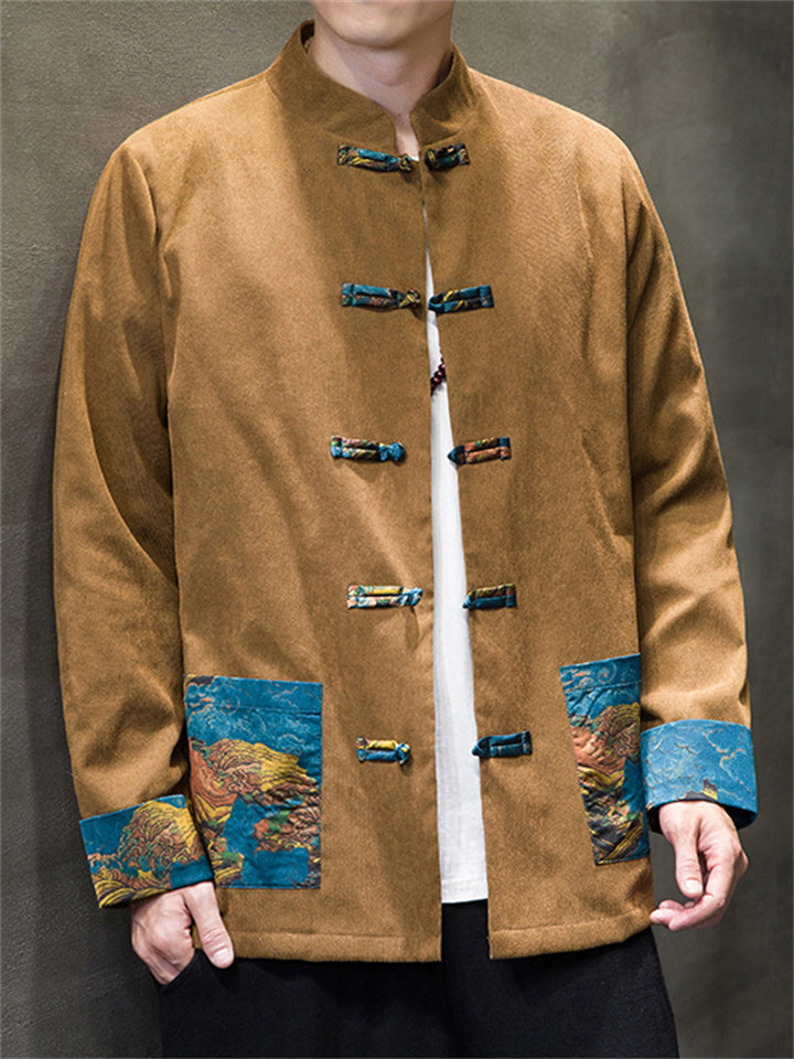 Contrast Color Print Pocket Knot Button Men's Tang Suit Jacket