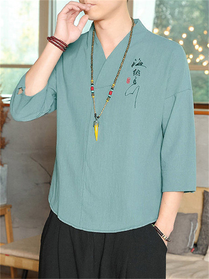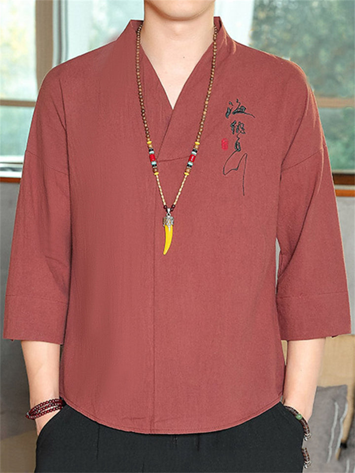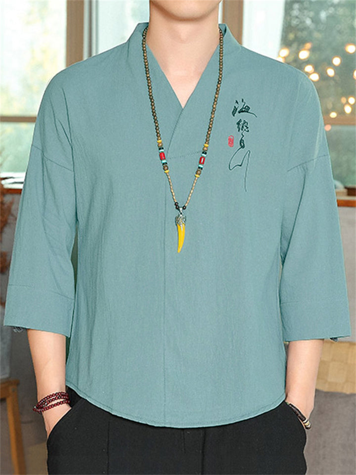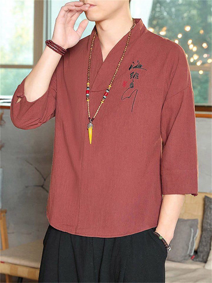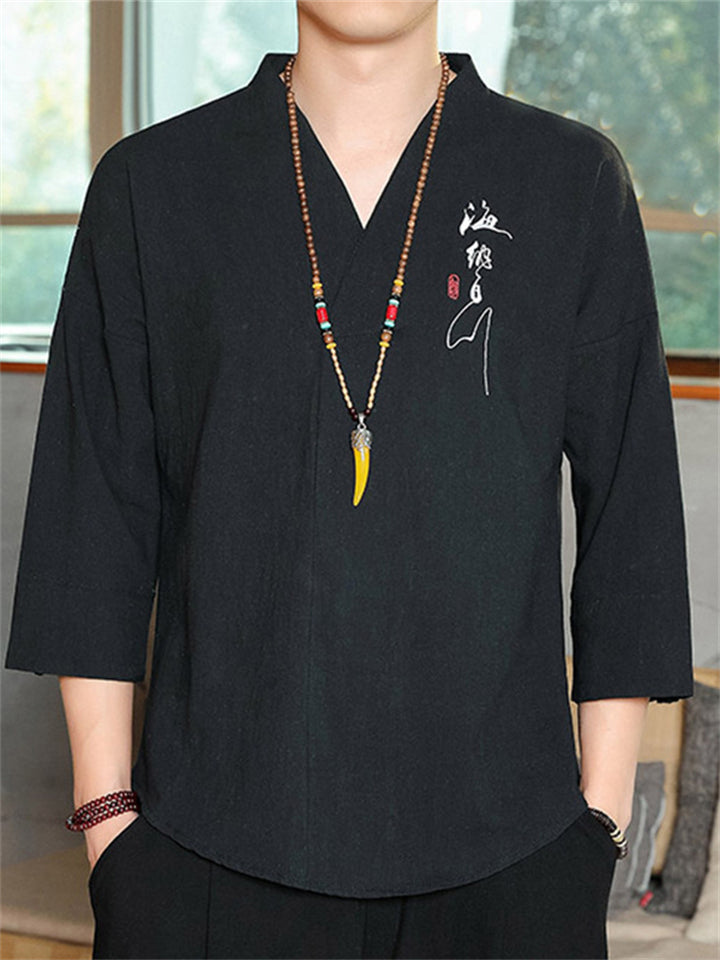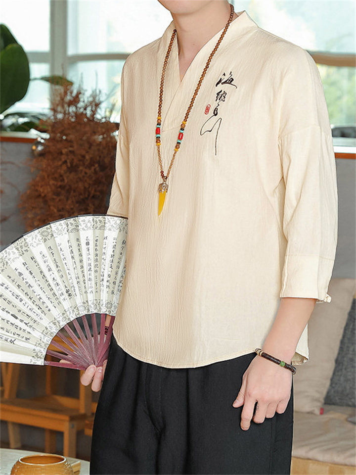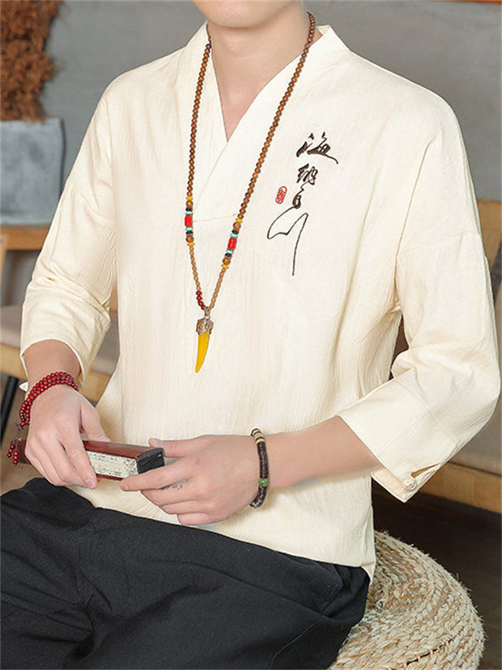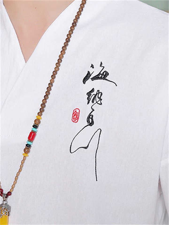 "Hai Na Bai Chuan" Hanzi Embroideried Male Summer Shirt