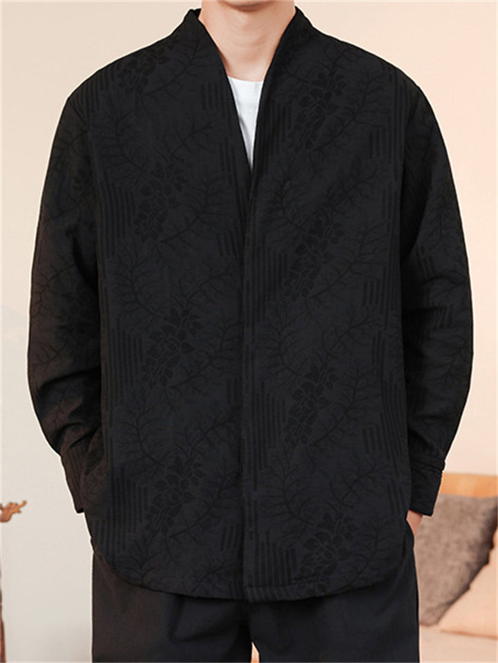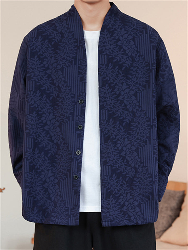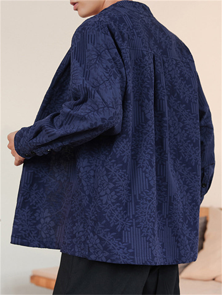 Men Chinese Style Vintage Floral Print Button Up Long Sleeve Shirts