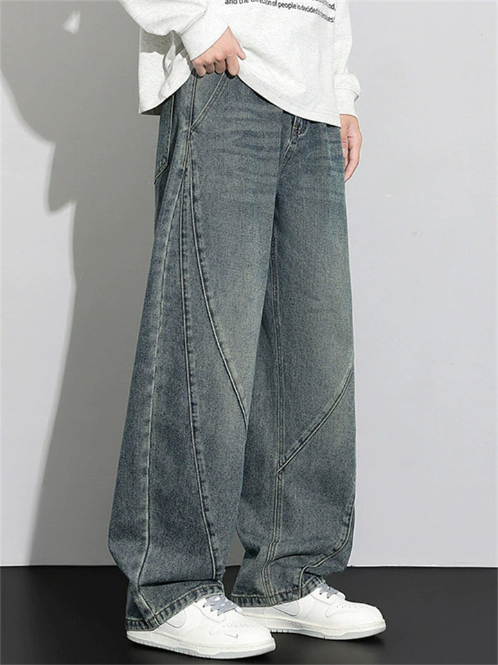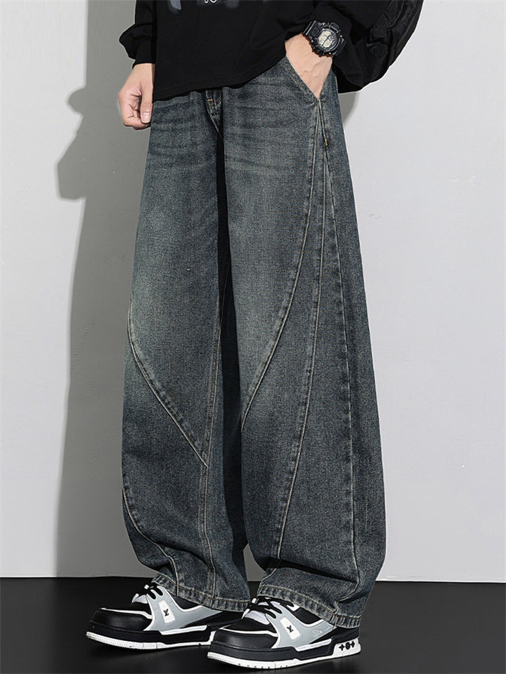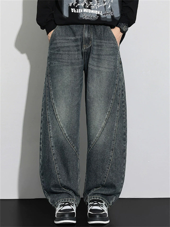 Men's Autumn Fashion Streetwear Loose Straight Fit Denim Scimitar Pants