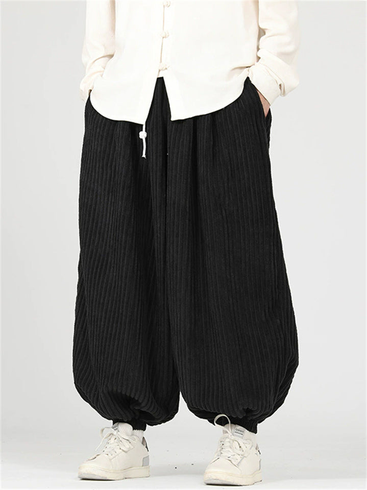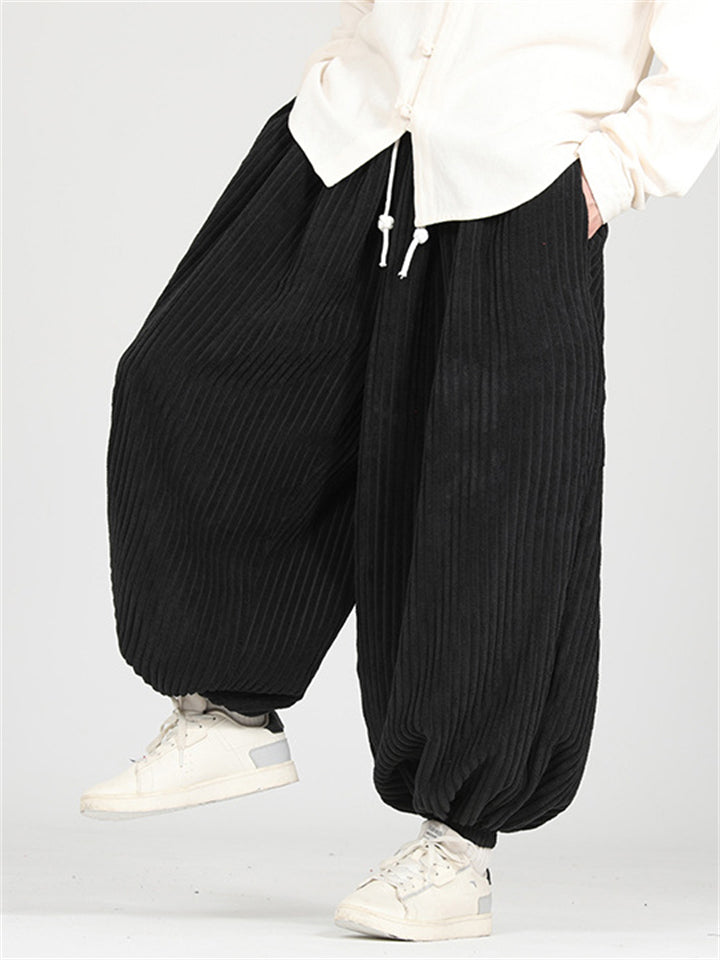 Men's Casual Trendy Solid Color Wide Leg Corduroy Bloomers Pants