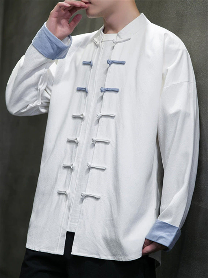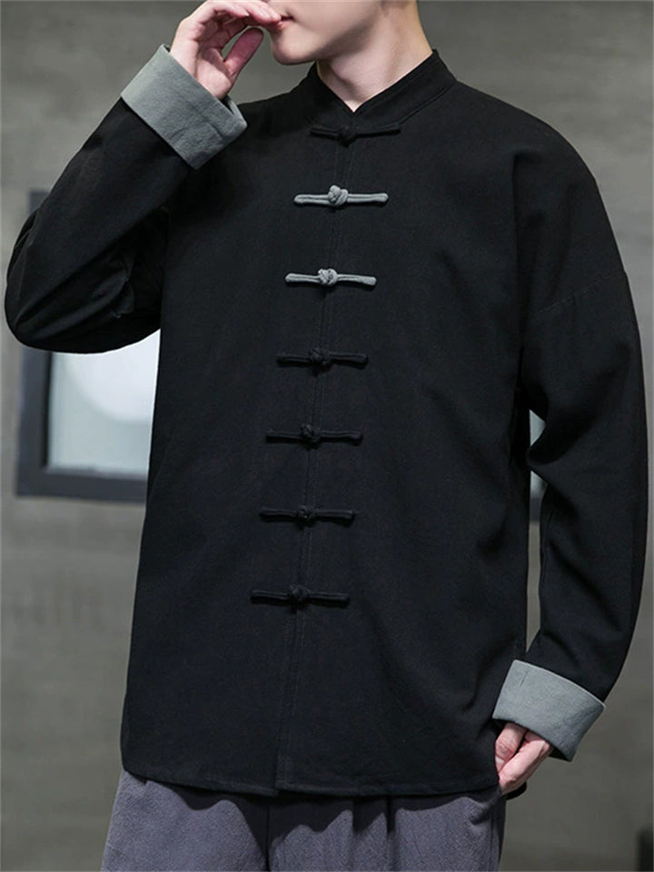 Men's Chinese Style Contrast Color Tang Suit Jacket with Frog Button