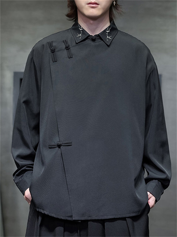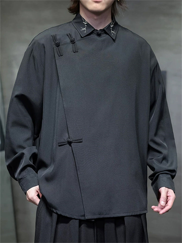 Men's Chinese Style Spring Slit Side Button Down Loose Tang Suit Shirts