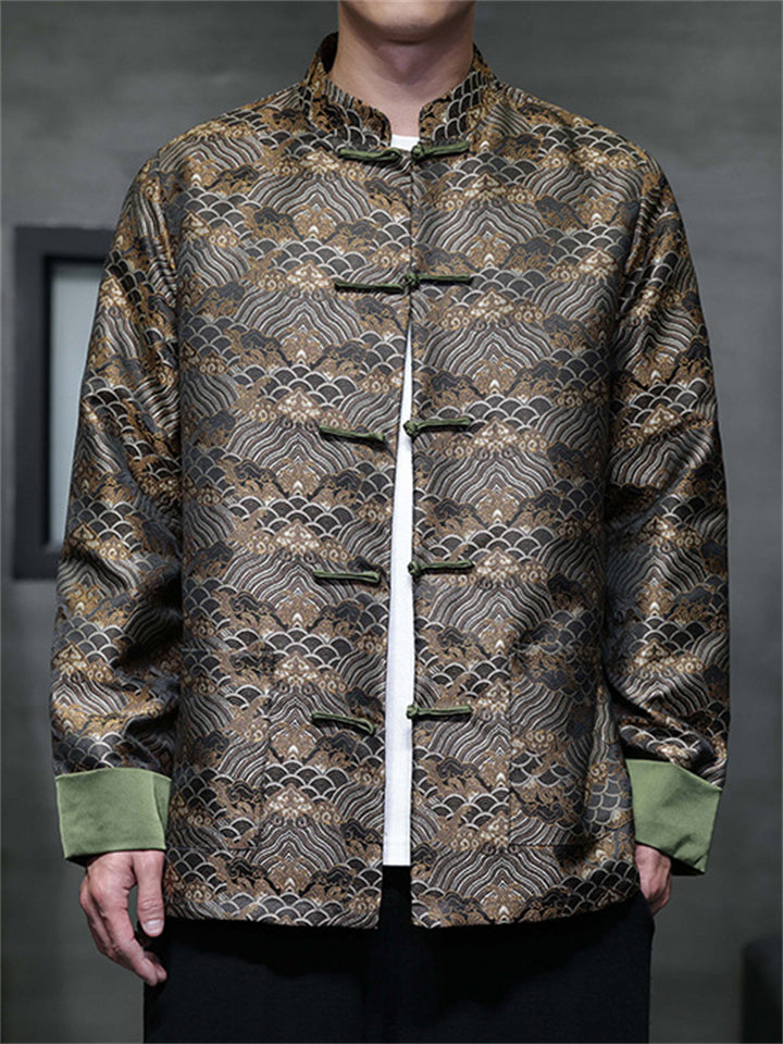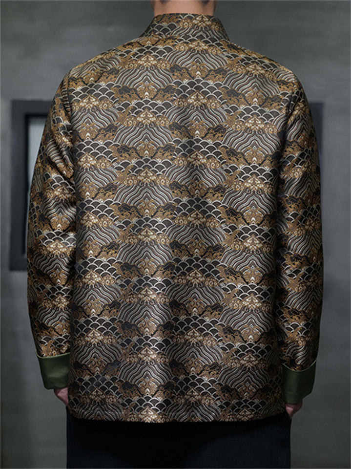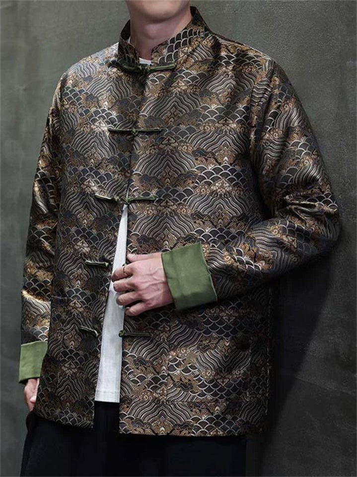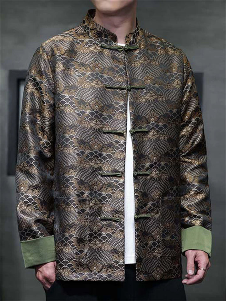 Men's Chinese Style Wavy Pattern Brocade Tangsuit Jacket Mandarin Collar