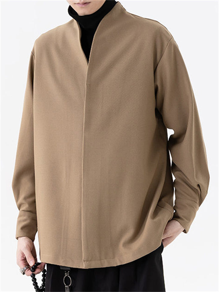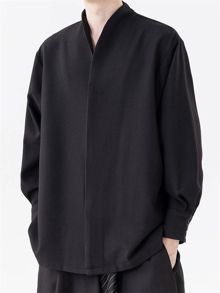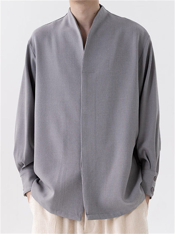 Men's Chinese Zen Style V Neck Long Sleeve Casual Loose Fit Shirts