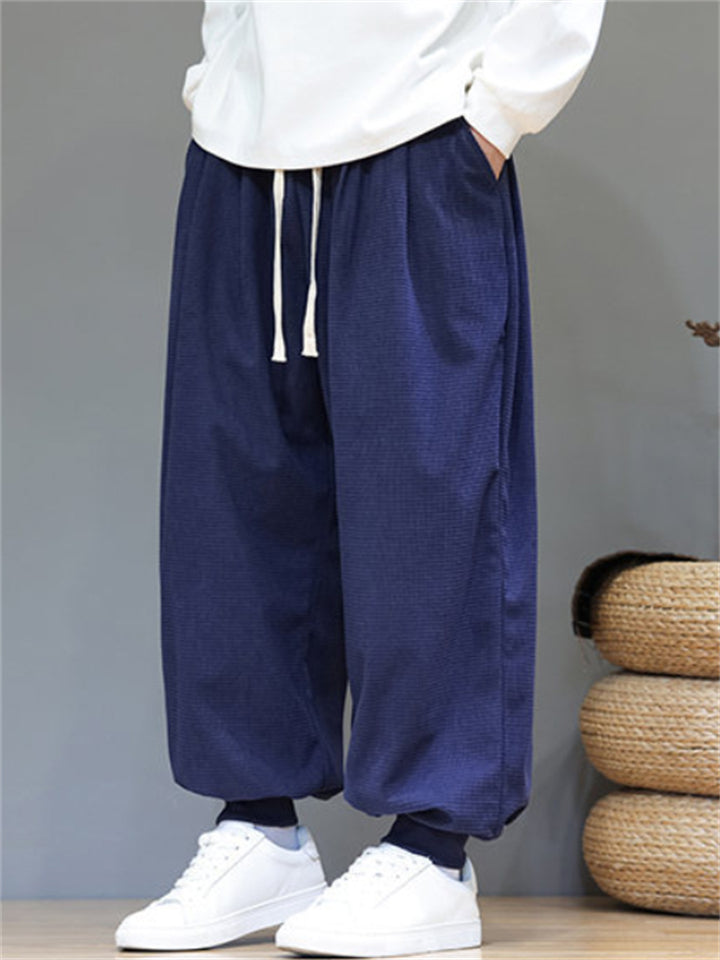 Men's Comfortable Corduroy Drawstring Loose-Fit Harem Jogger Pants