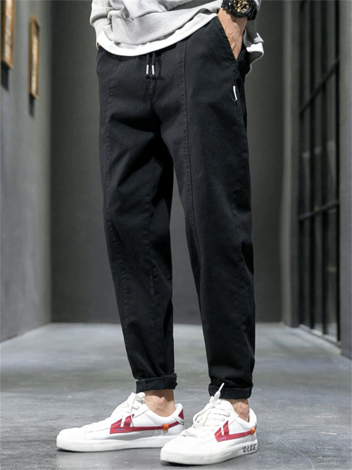 Men's Cotton Drawstring Casual Loose Fit Tapered Leg Cargo Pants