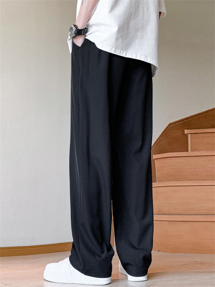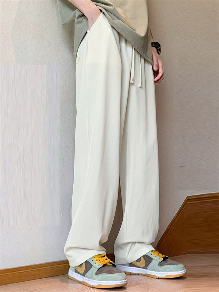 Men's Elastic Waist Drawstring Casual Loose Fit Straight Leg Pants