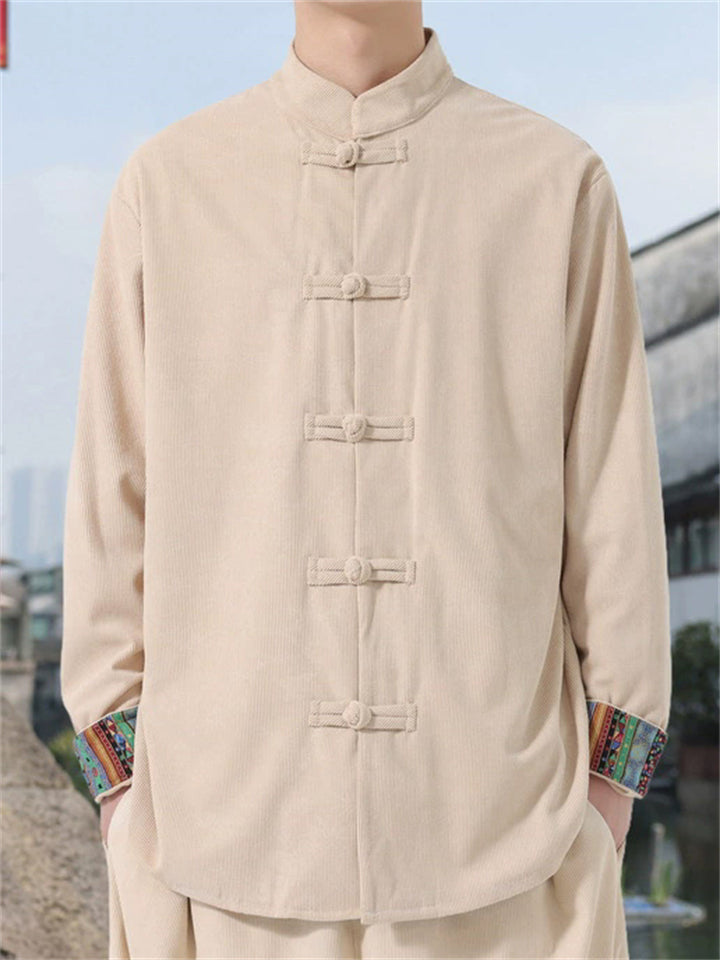 Men's Retro Chinese Style Corduroy Jacquard Tangsuit Jackets