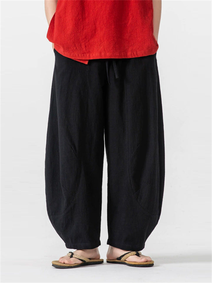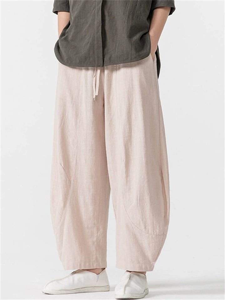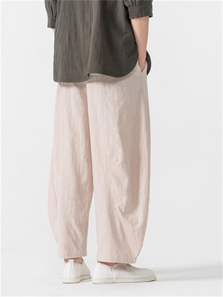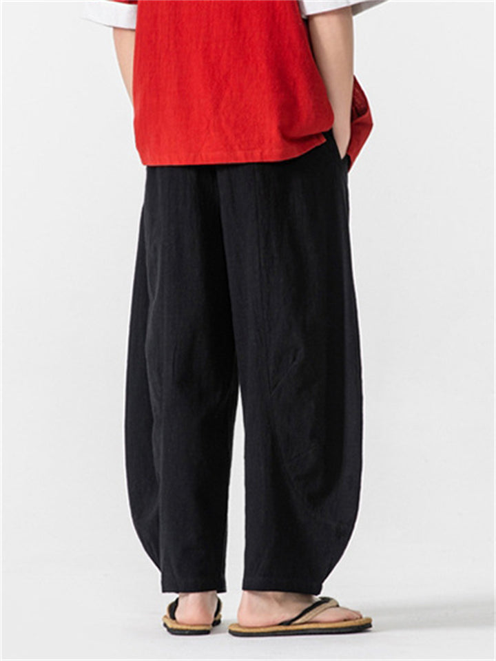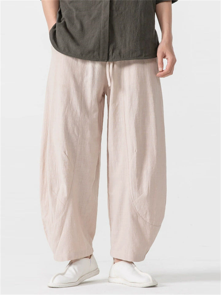 Men's Simple Chinese Style Solid Color Cotton Wide Leg Straight Pants