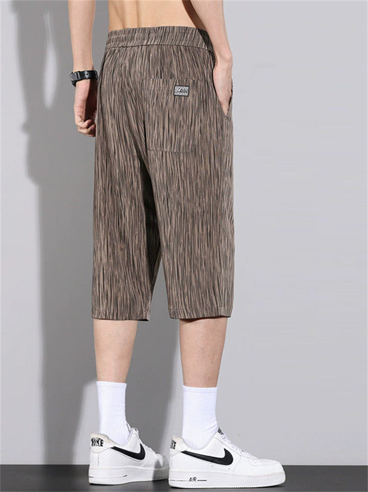 Men's Summer Cool Comfy Drawstring Striped Loose Capri Pants