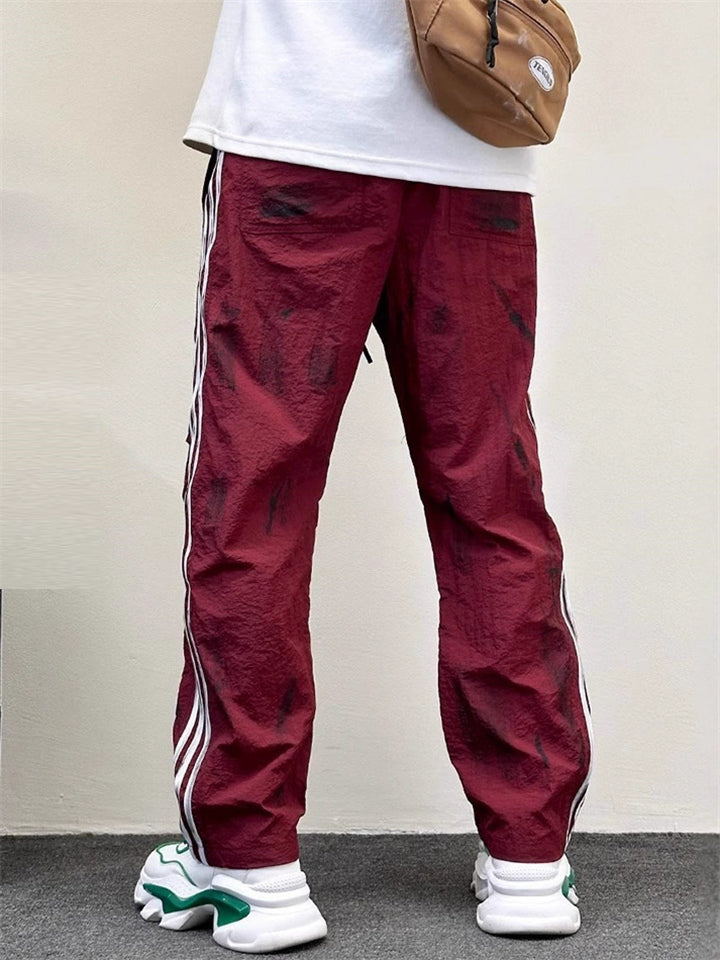 Men's Summer Distressed Letter-Print Side Stripe Track Pants