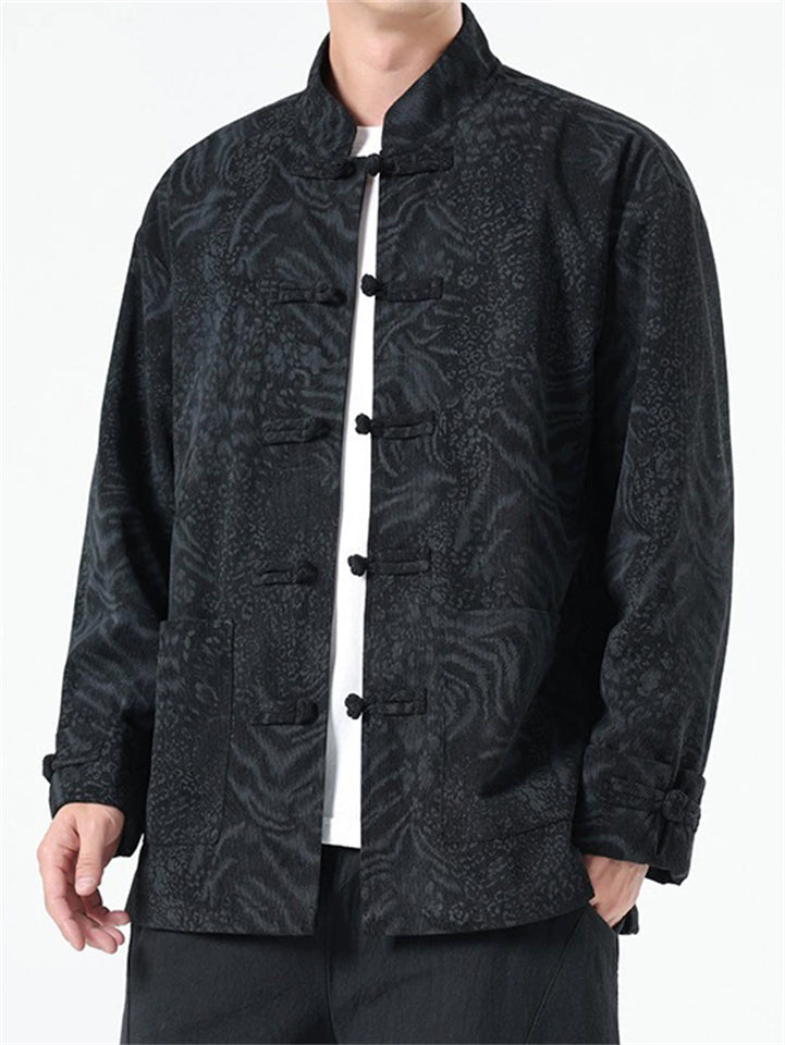 Men's Tiger Print Stand Collar Tang Suit Vintage Chinese Kung Fu Jackets