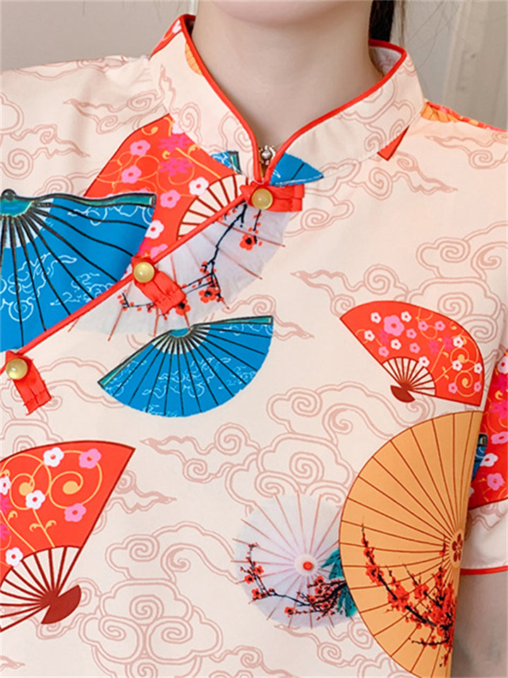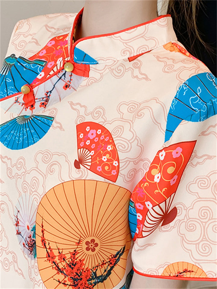 Diagonal Button Women's Spring Summer Improved Hanfu Shirt