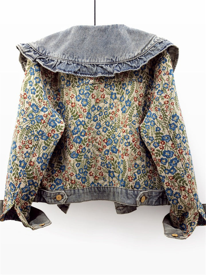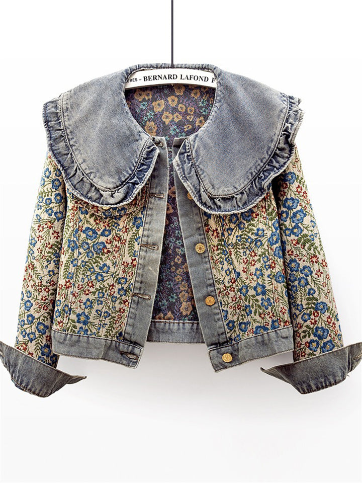 Women's Vintage Autumn Floral Jacquard Peter Pan Collar Jackets